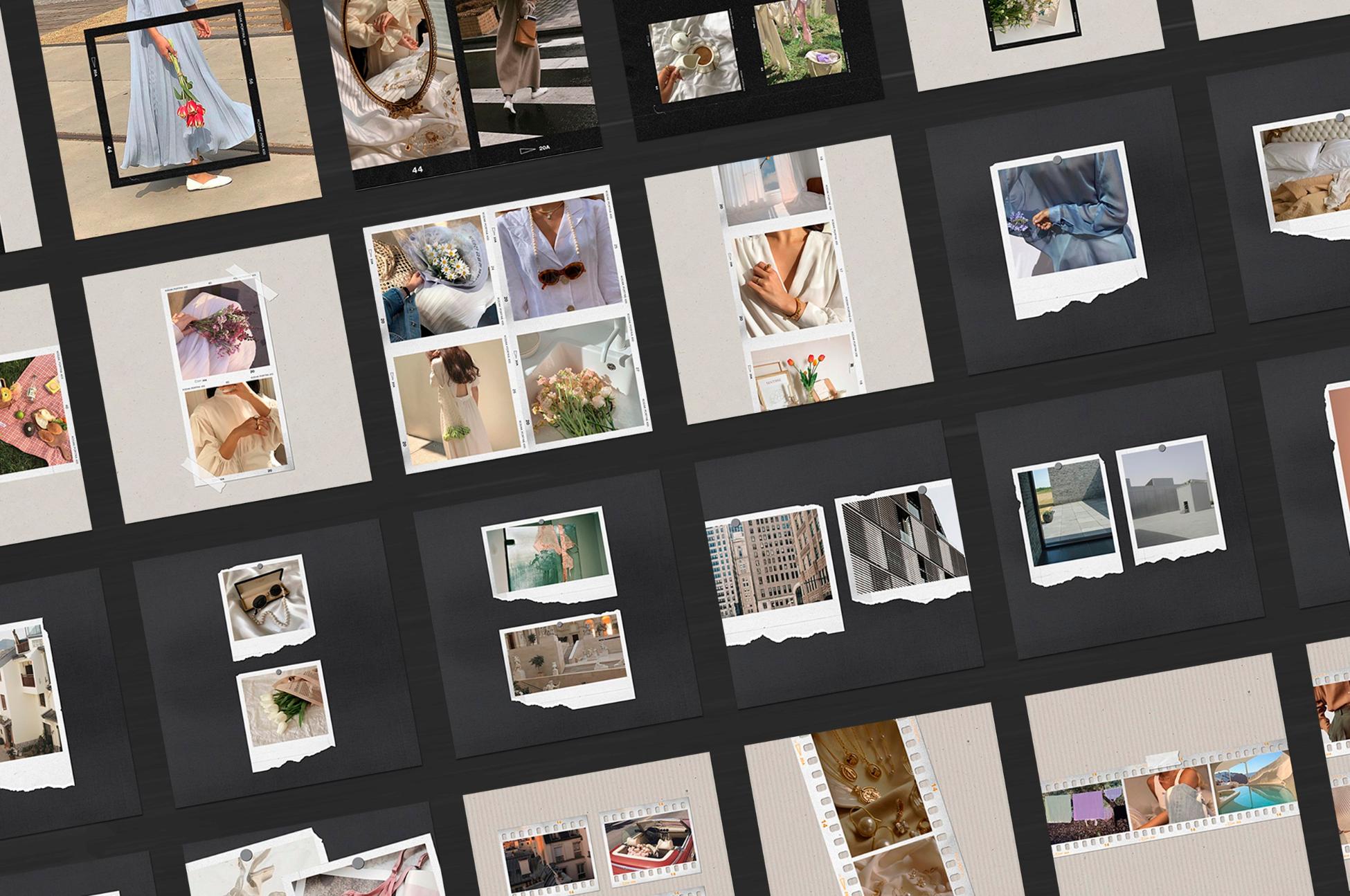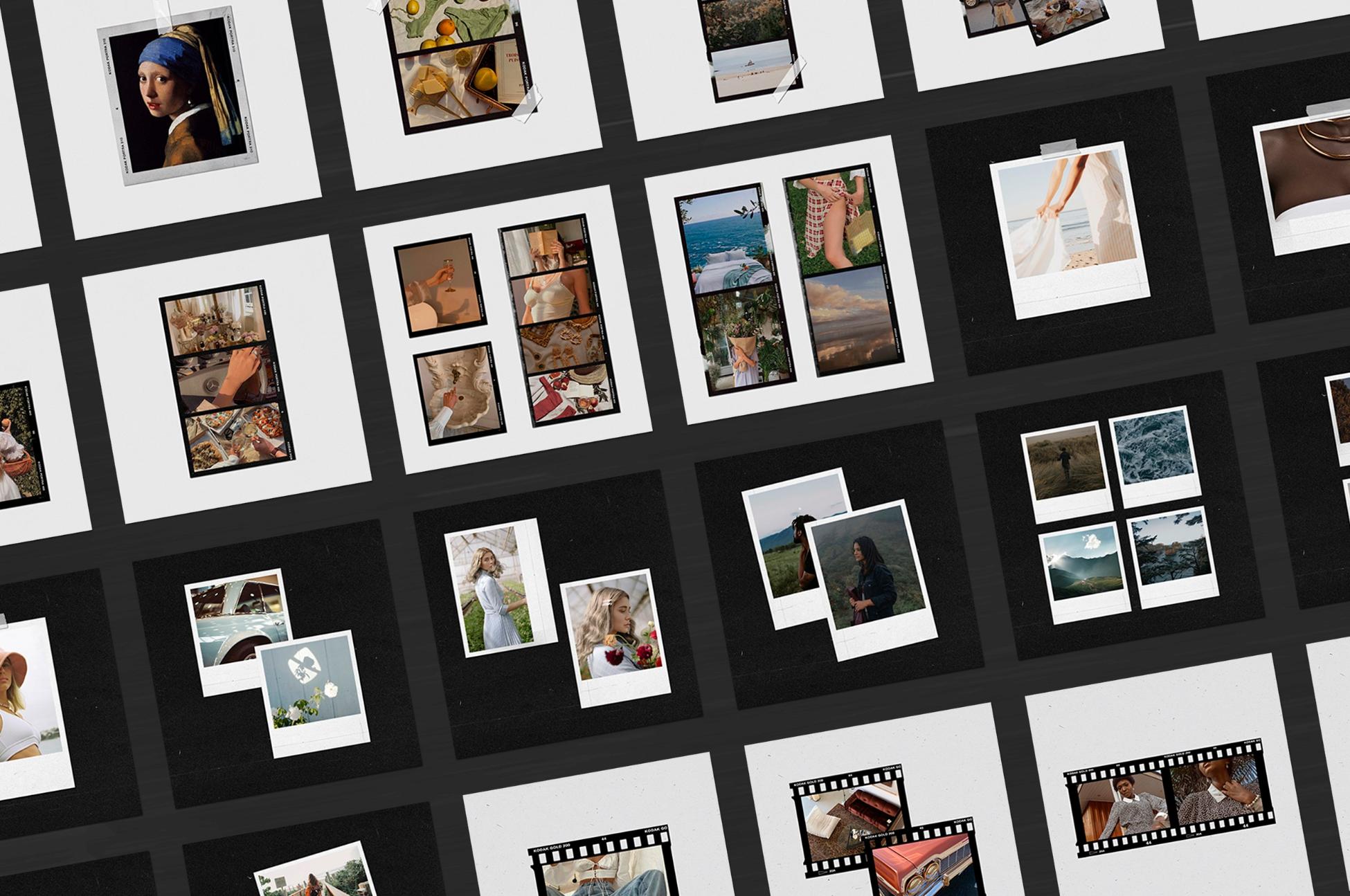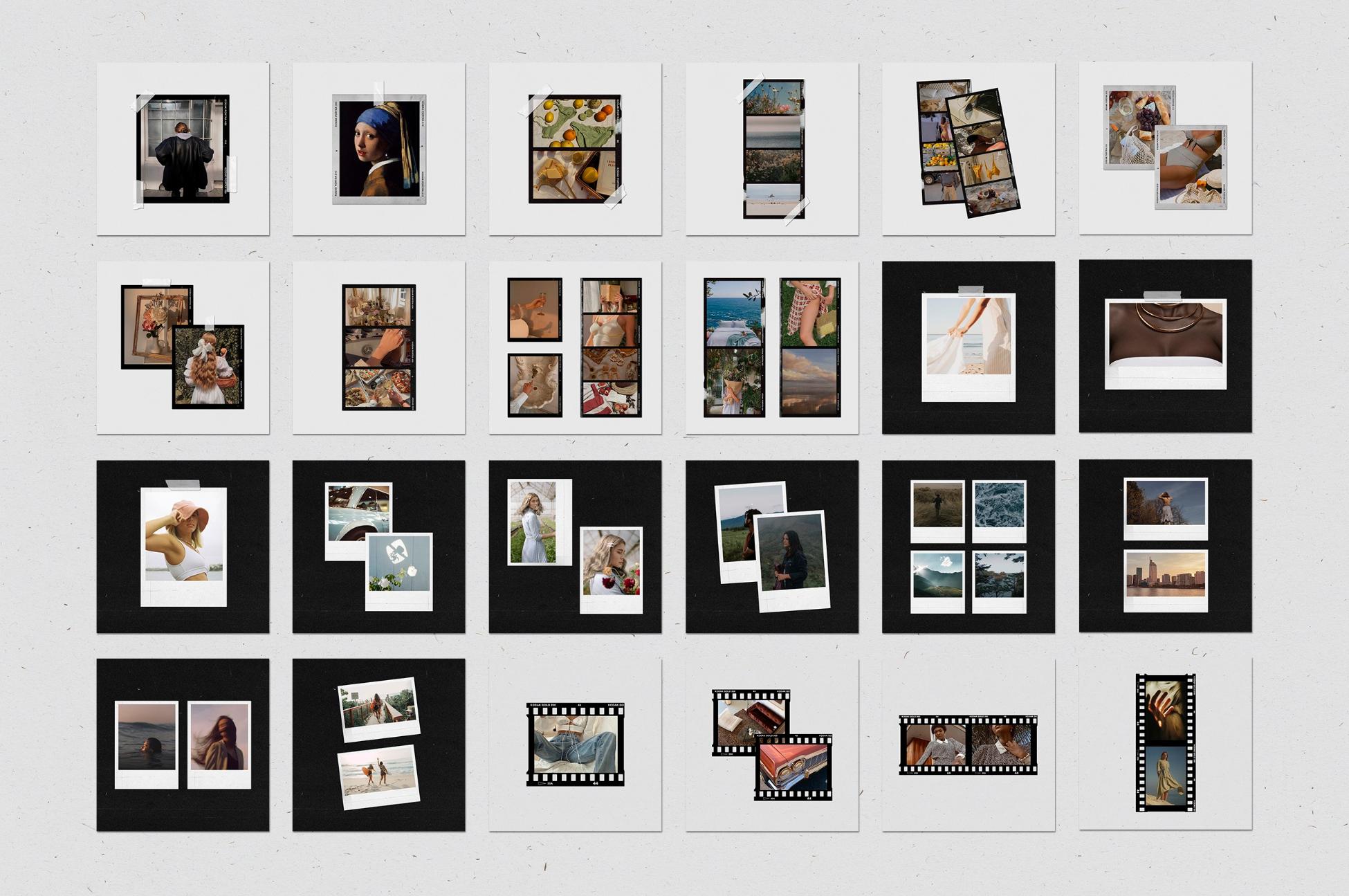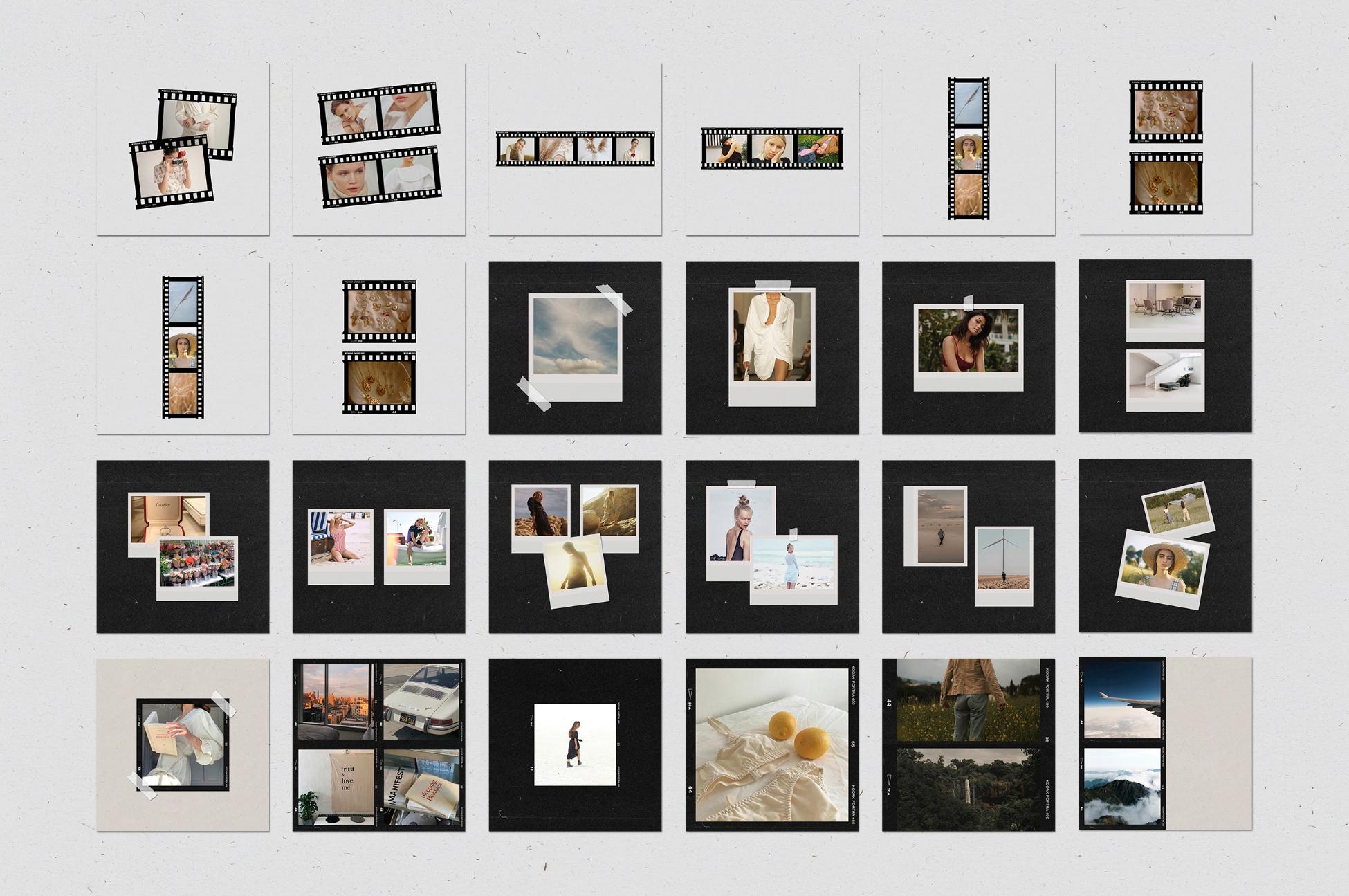 In addition to film frames, instant and polaroids you can find other elements on templates:
