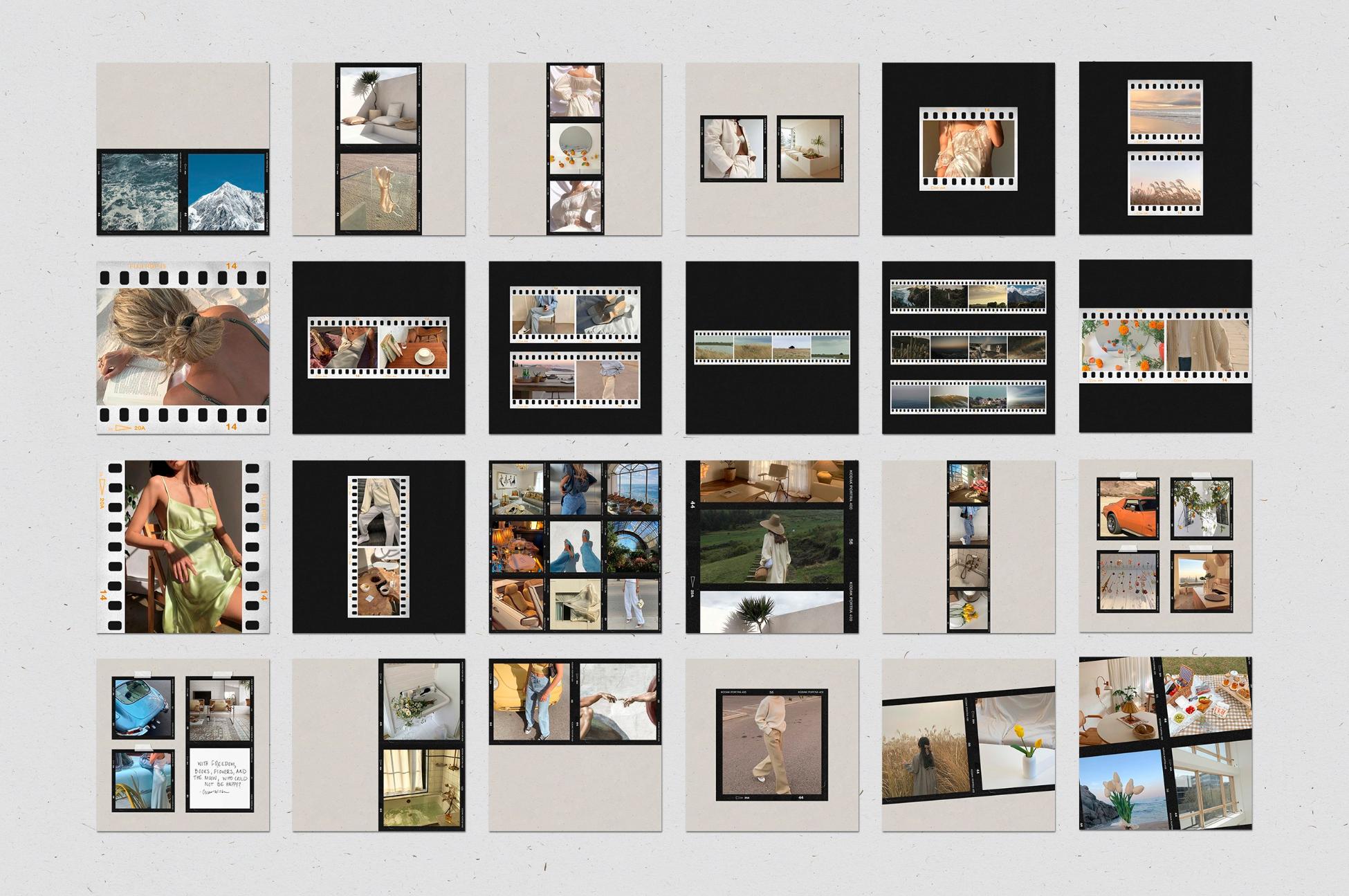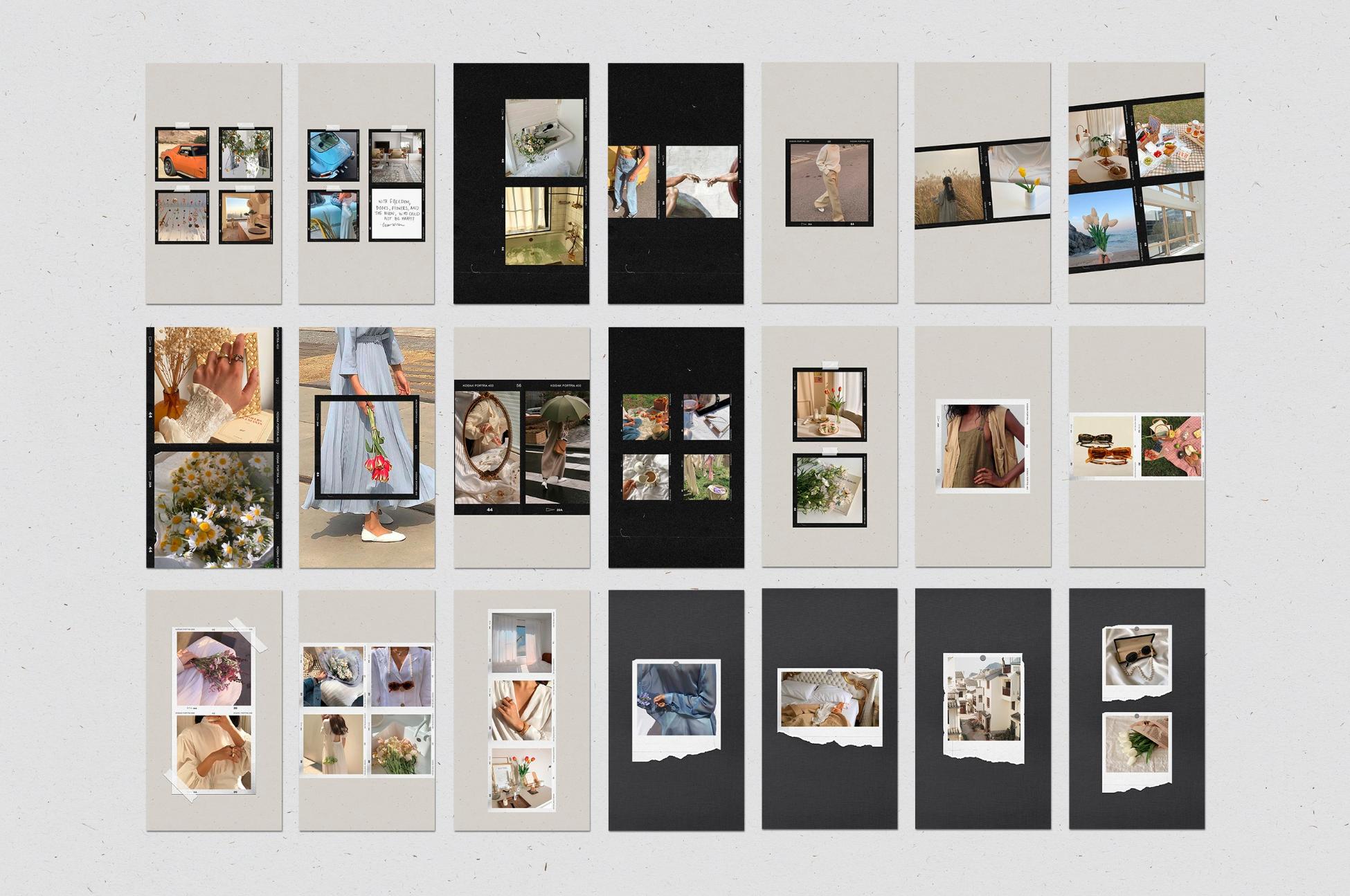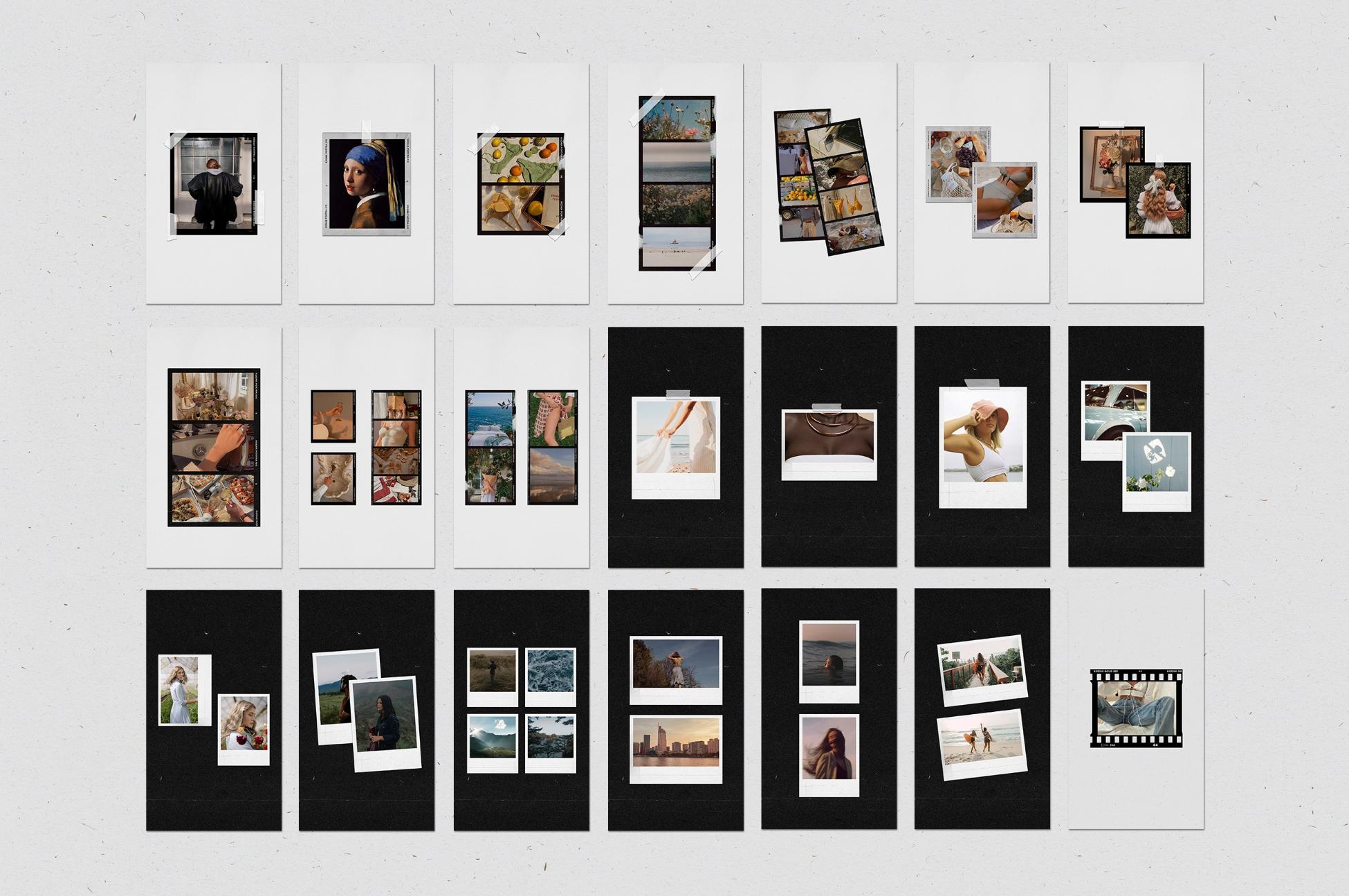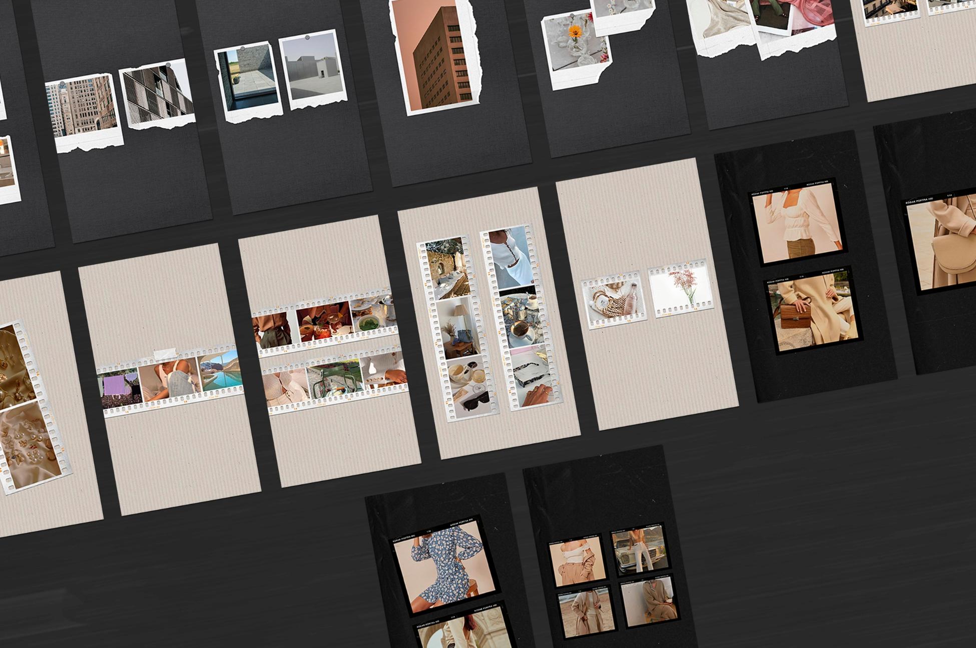 In addition to film frames, instant and polaroids you can find other elements on templates: