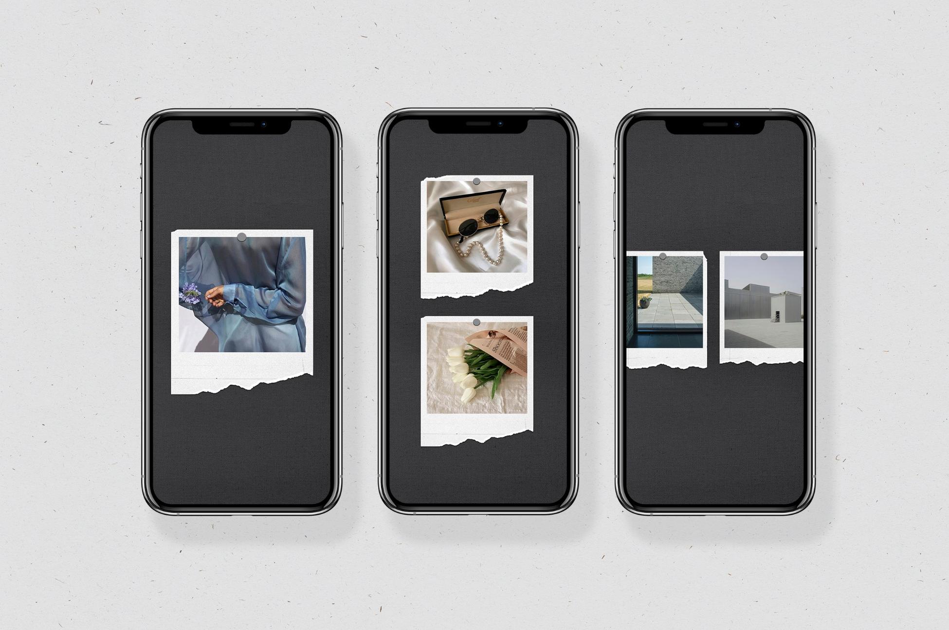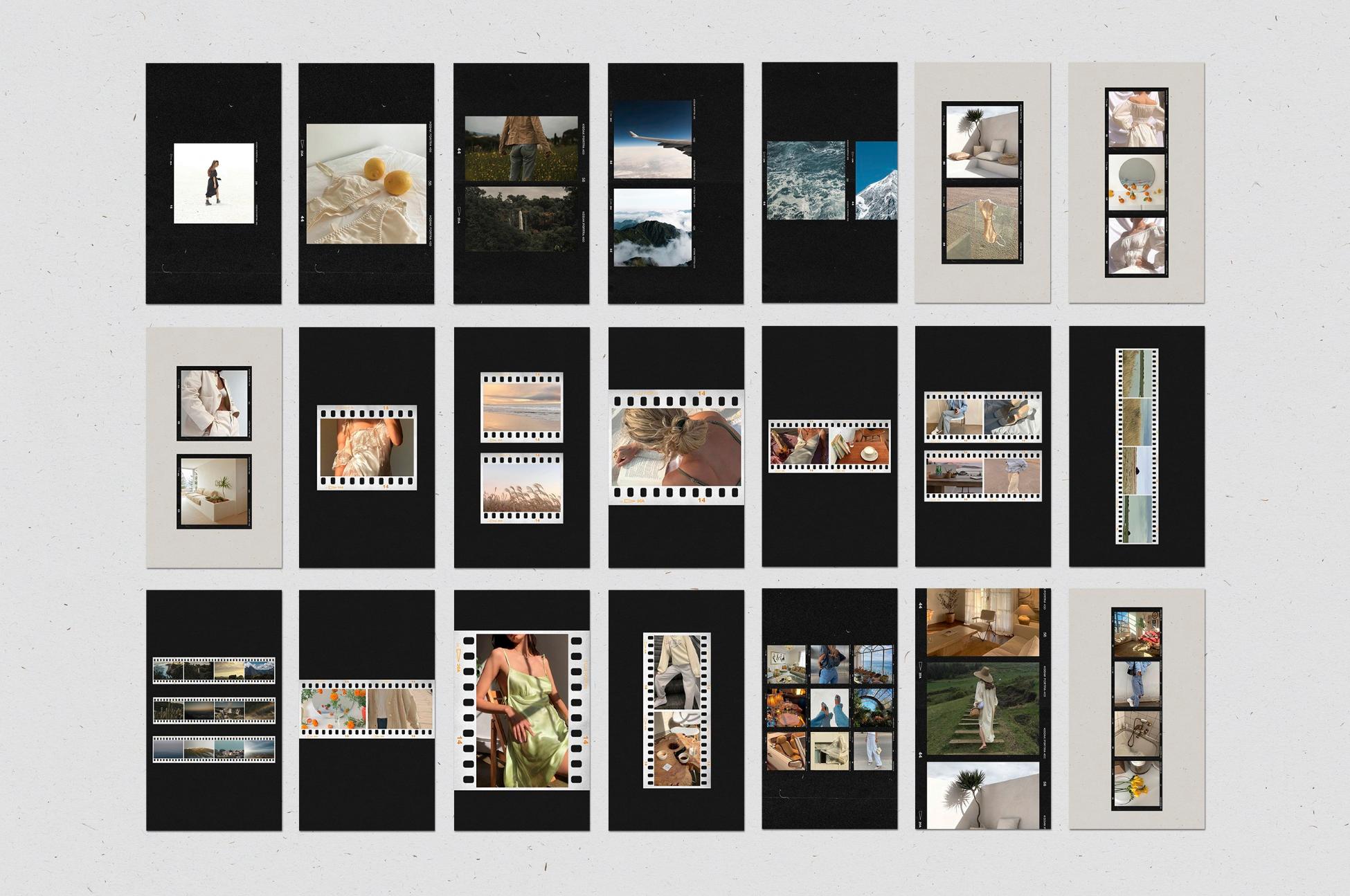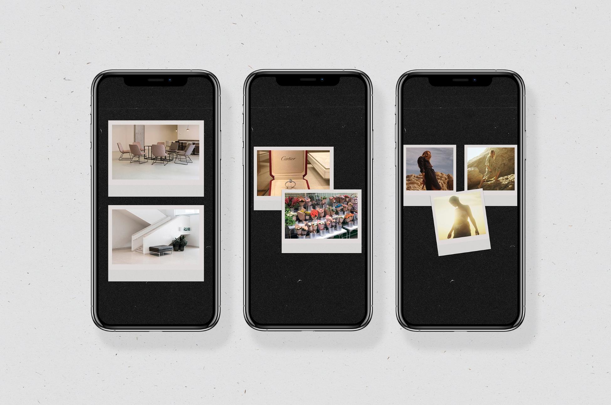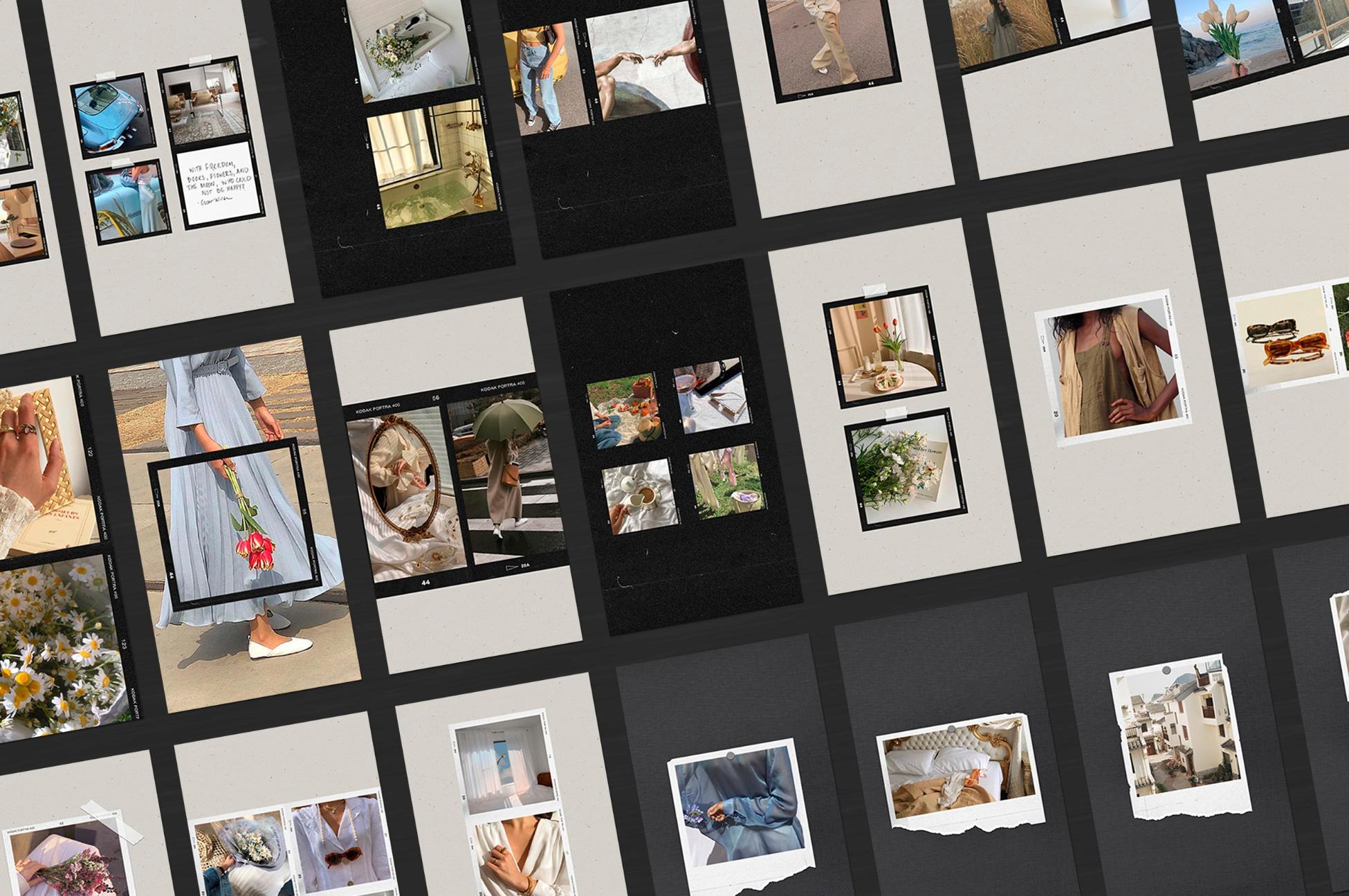 In addition to film frames, instant and polaroids you can find other elements on templates: