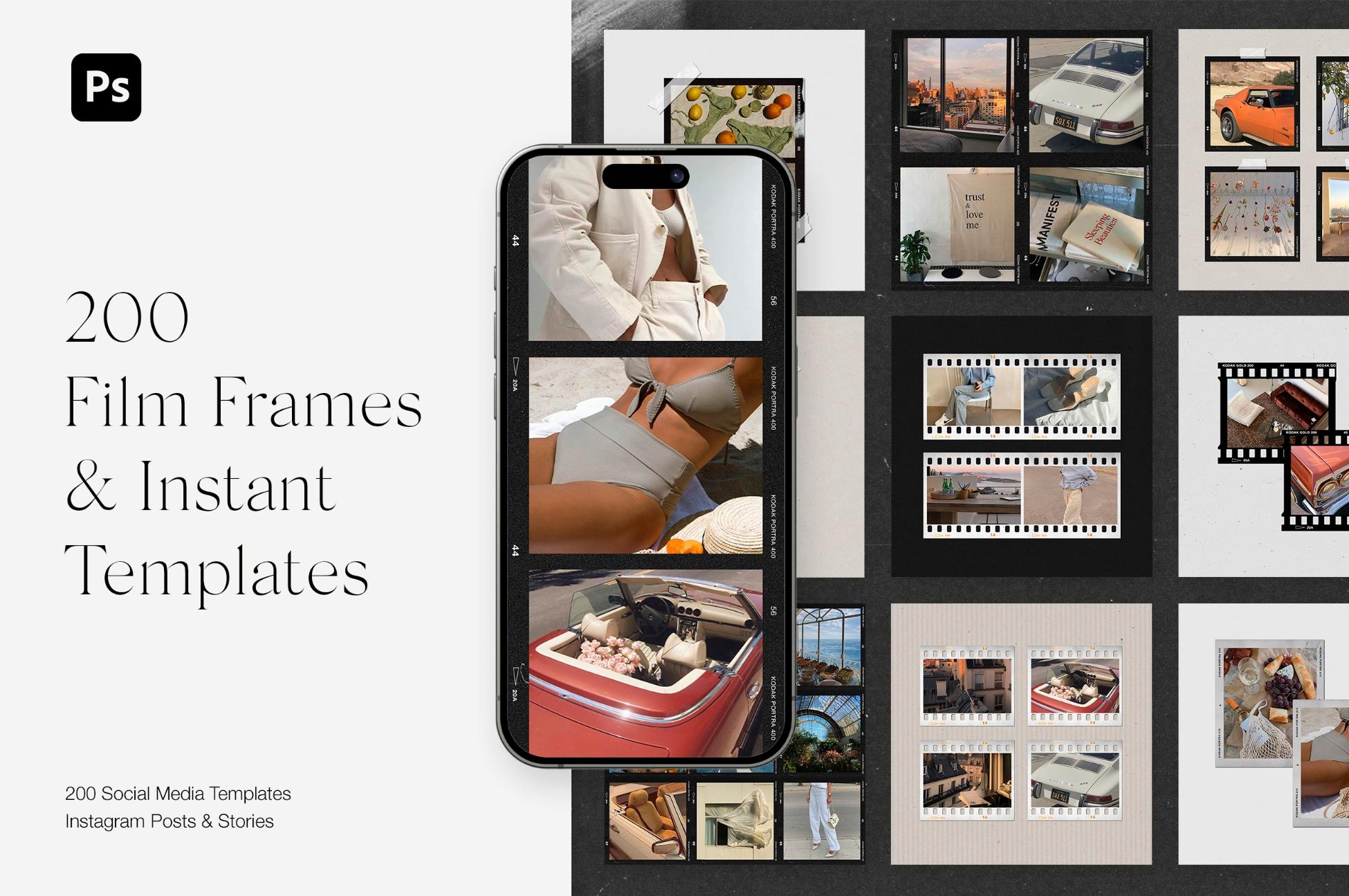 200 Film Frames, Instant and Polaroid Templates for your Social Media.