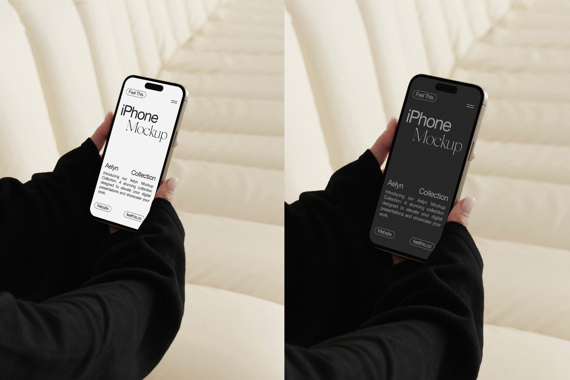 This mockup is part of the Aelyn Mockup Bundle, an aesthetic collection featuring 18 unique mockups of iPhones, MacBooks, & Posters.