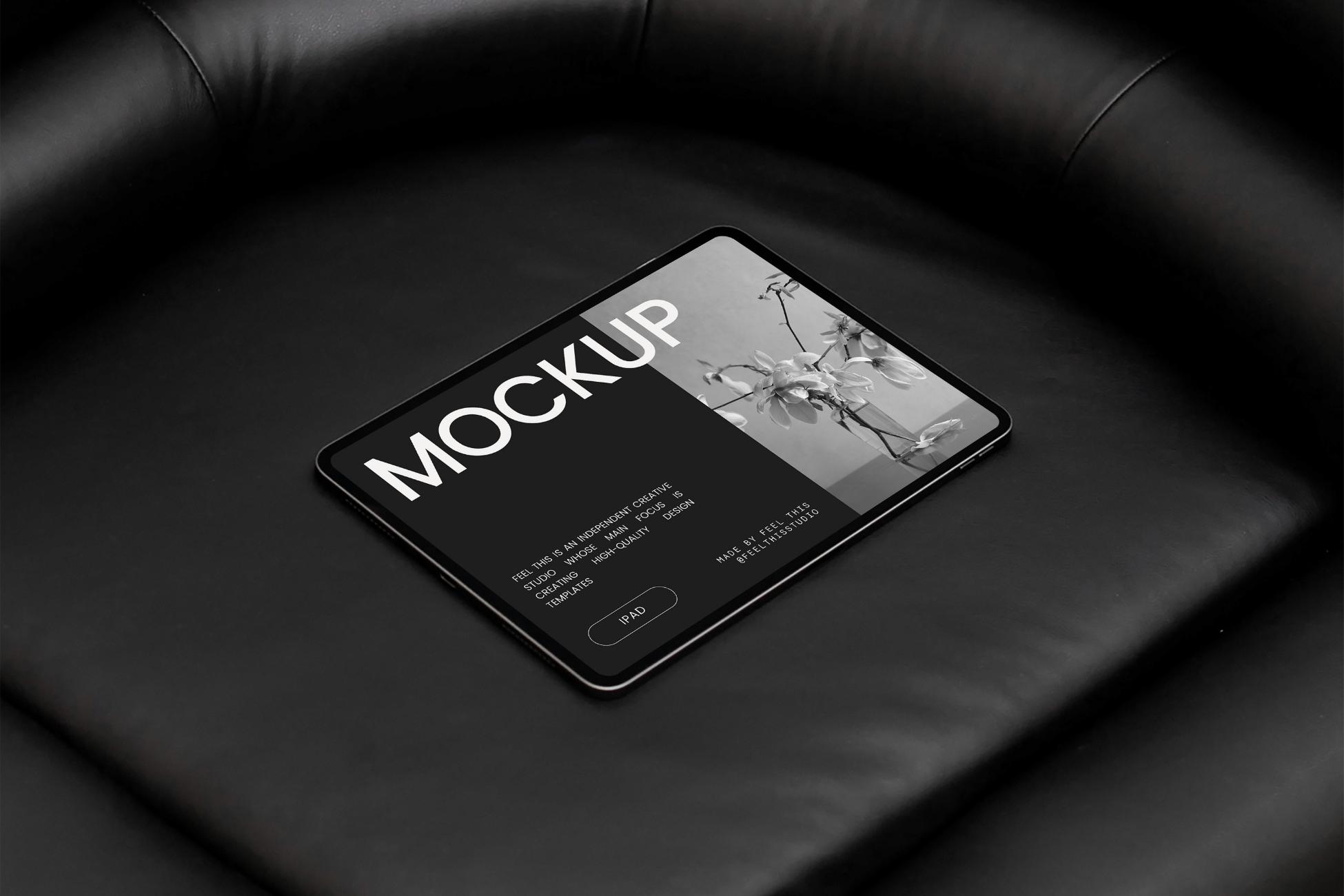 Elevate your design projects with this sleek and minimalist iPad Air mockup. Perfect for showcasing your app designs, website layouts, or digital artwork in a dark, moody environment.