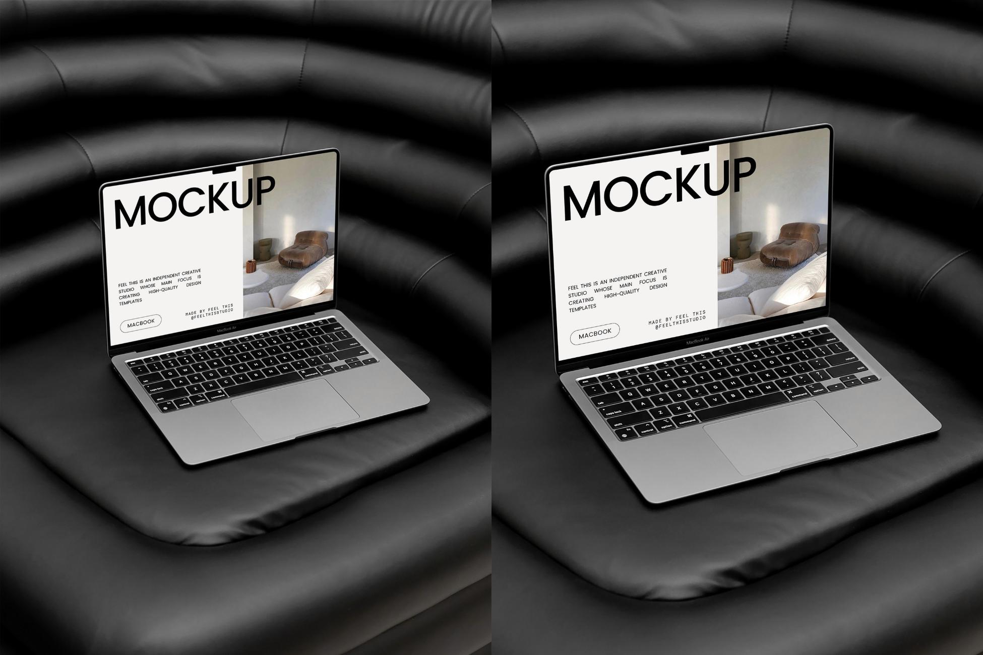 Elevate your design projects with this sleek and sophisticated MacBook Air mockup in a dark aesthetic. Perfect for showcasing your website designs, app interfaces, or digital artwork in a minimalist and professional setting.