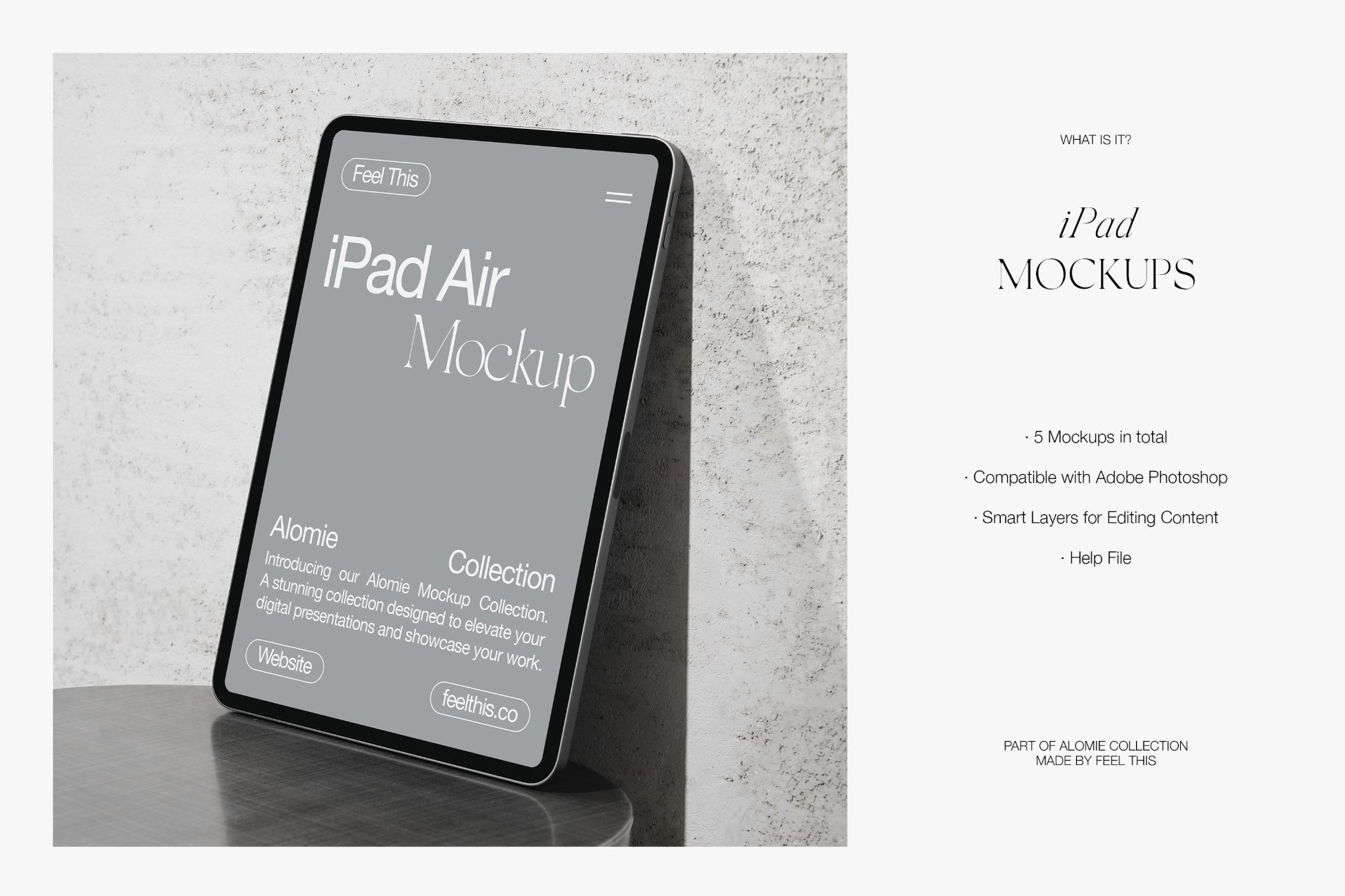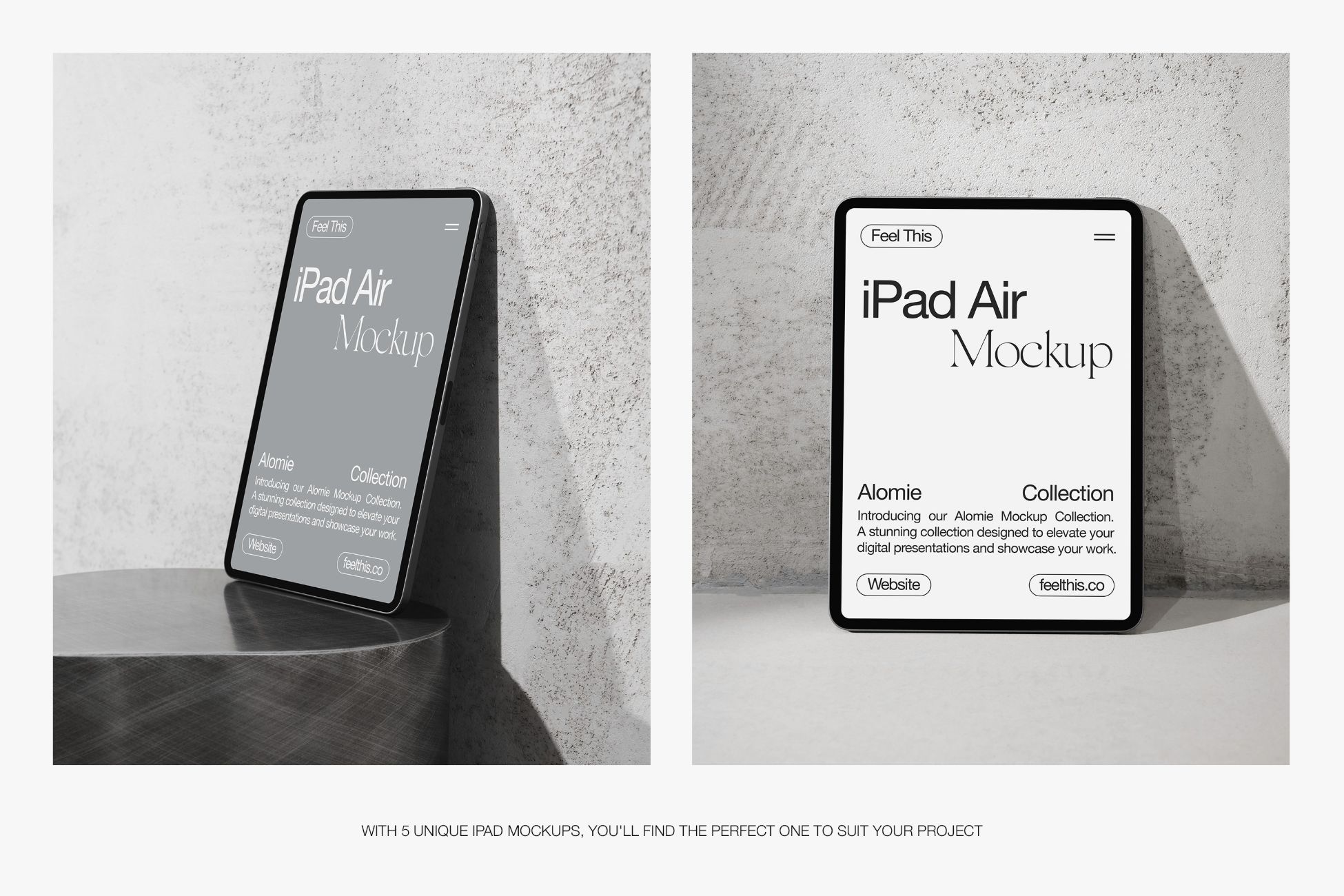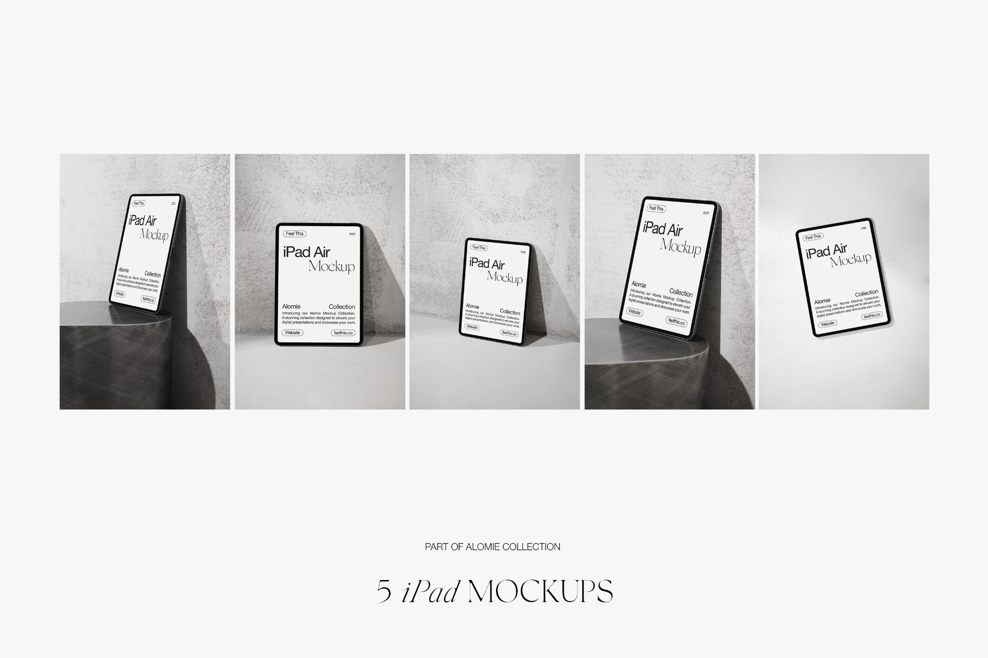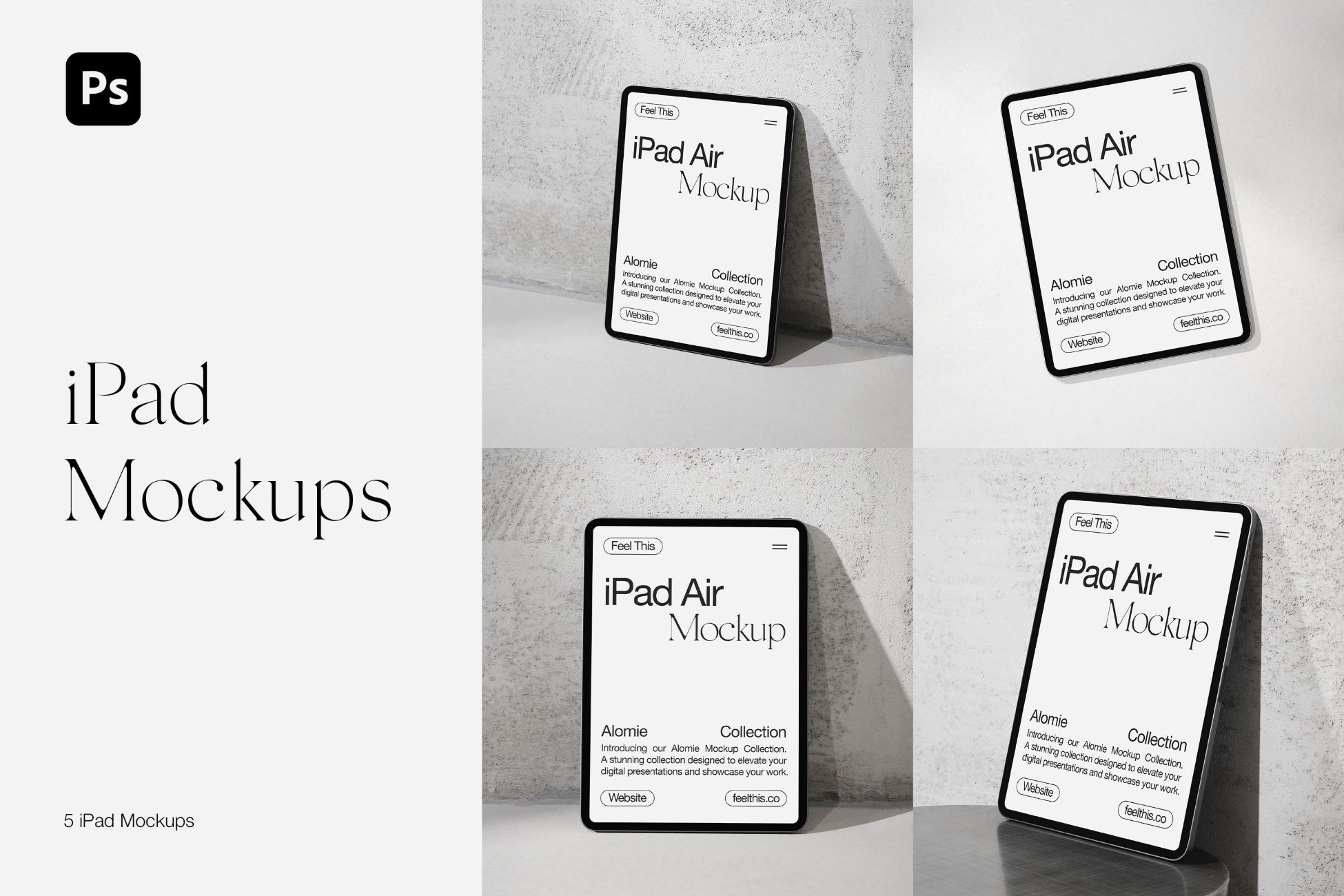 5 Realistic iPad Air Mockups – Perfect for displaying apps, web designs, social media branding, and digital presentations