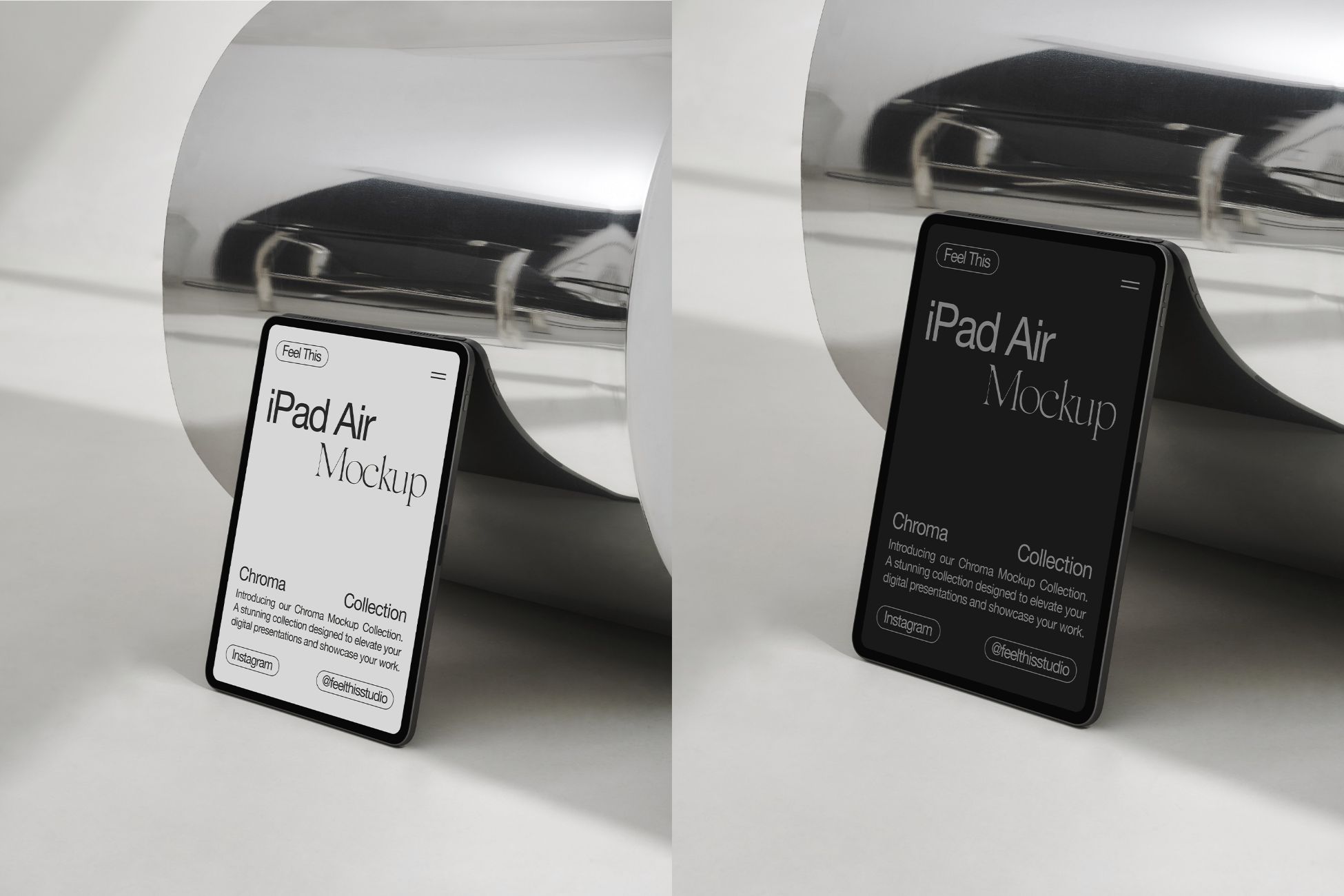 Introducing our premium iPad Air mockup, meticulously crafted to enhance your design projects with a clean and minimalist aesthetic. Whether you're a graphic designer, marketing professional, or a brand enthusiast, this mockup will be your go-to tool for showcasing your designs.