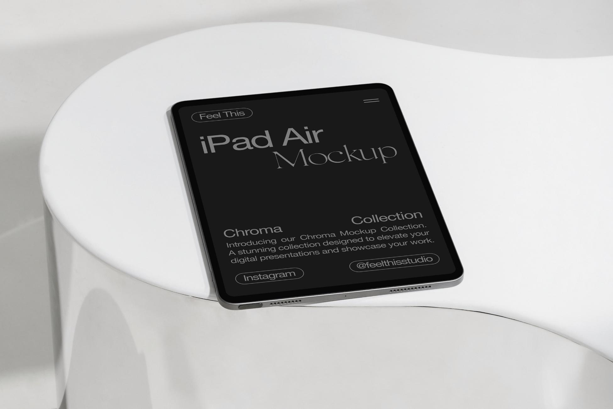 Introducing our premium iPad Air mockup, meticulously crafted to enhance your design projects with a clean and minimalist aesthetic. Whether you're a graphic designer, marketing professional, or a brand enthusiast, this mockup will be your go-to tool for showcasing your designs.