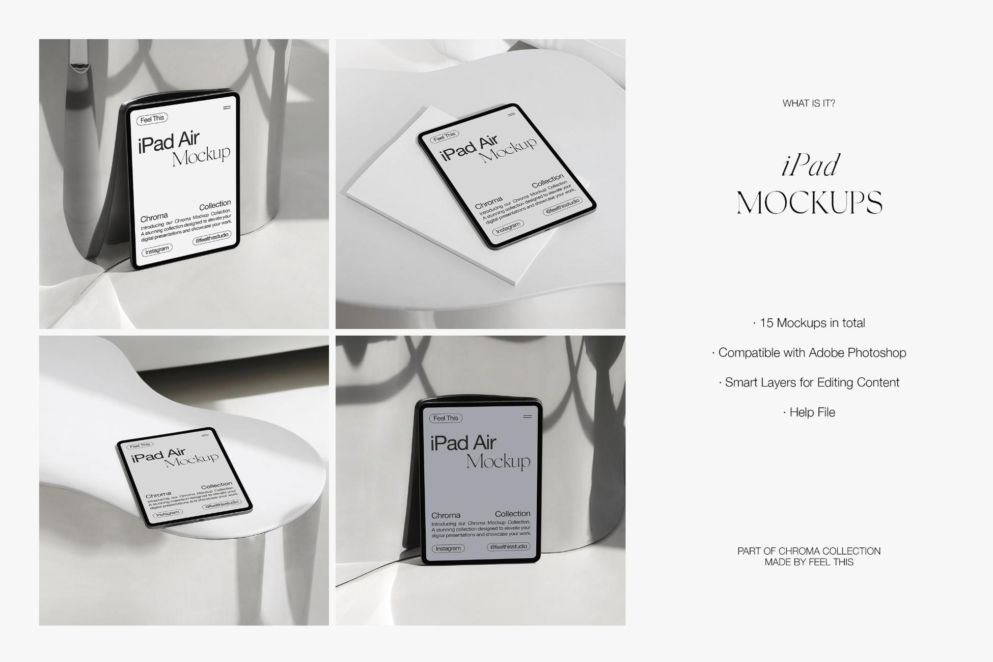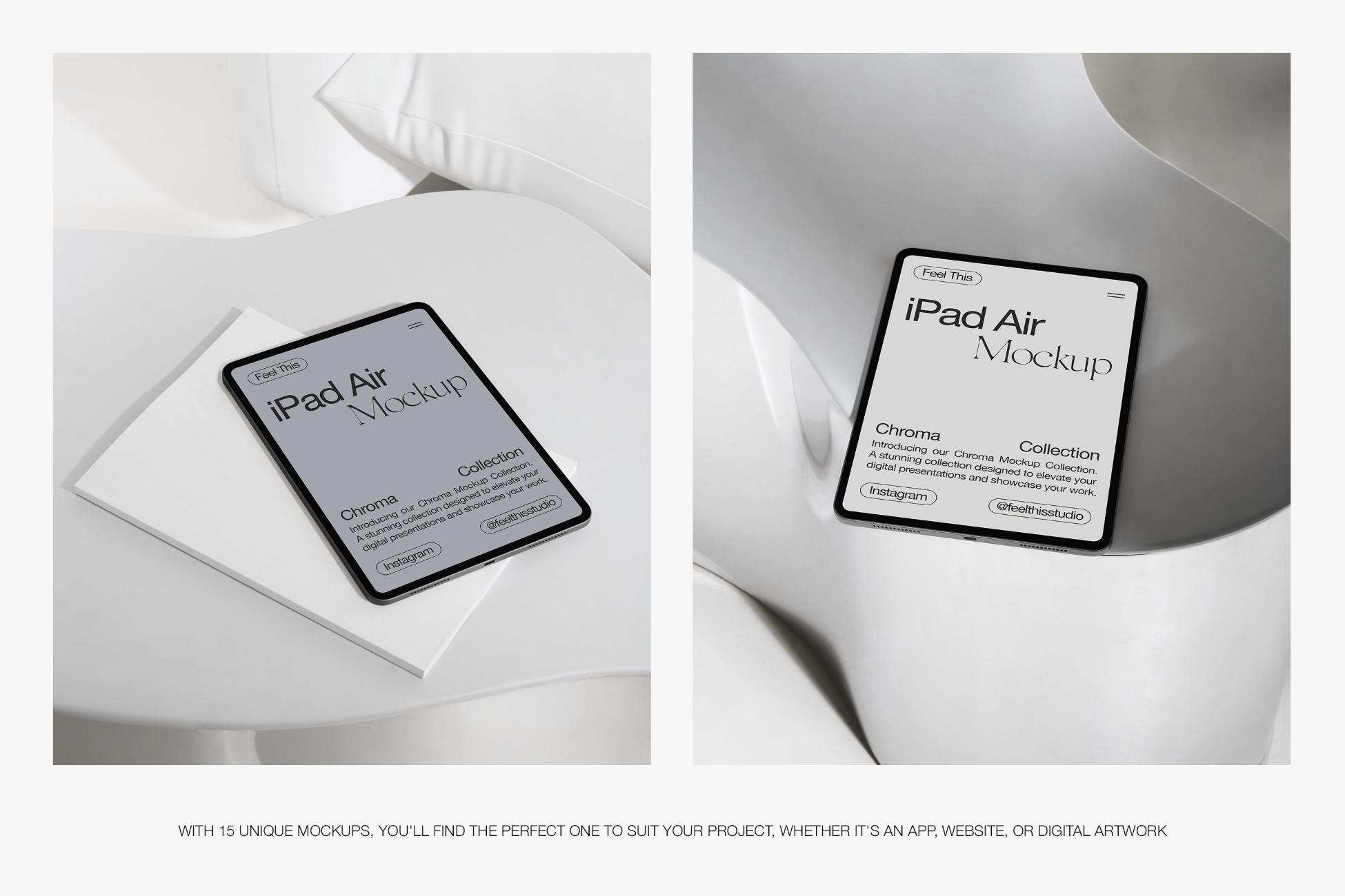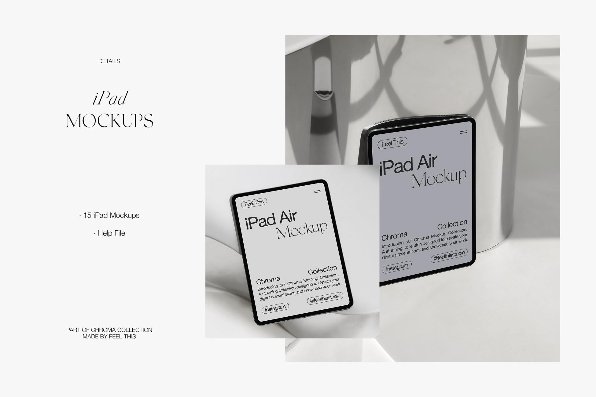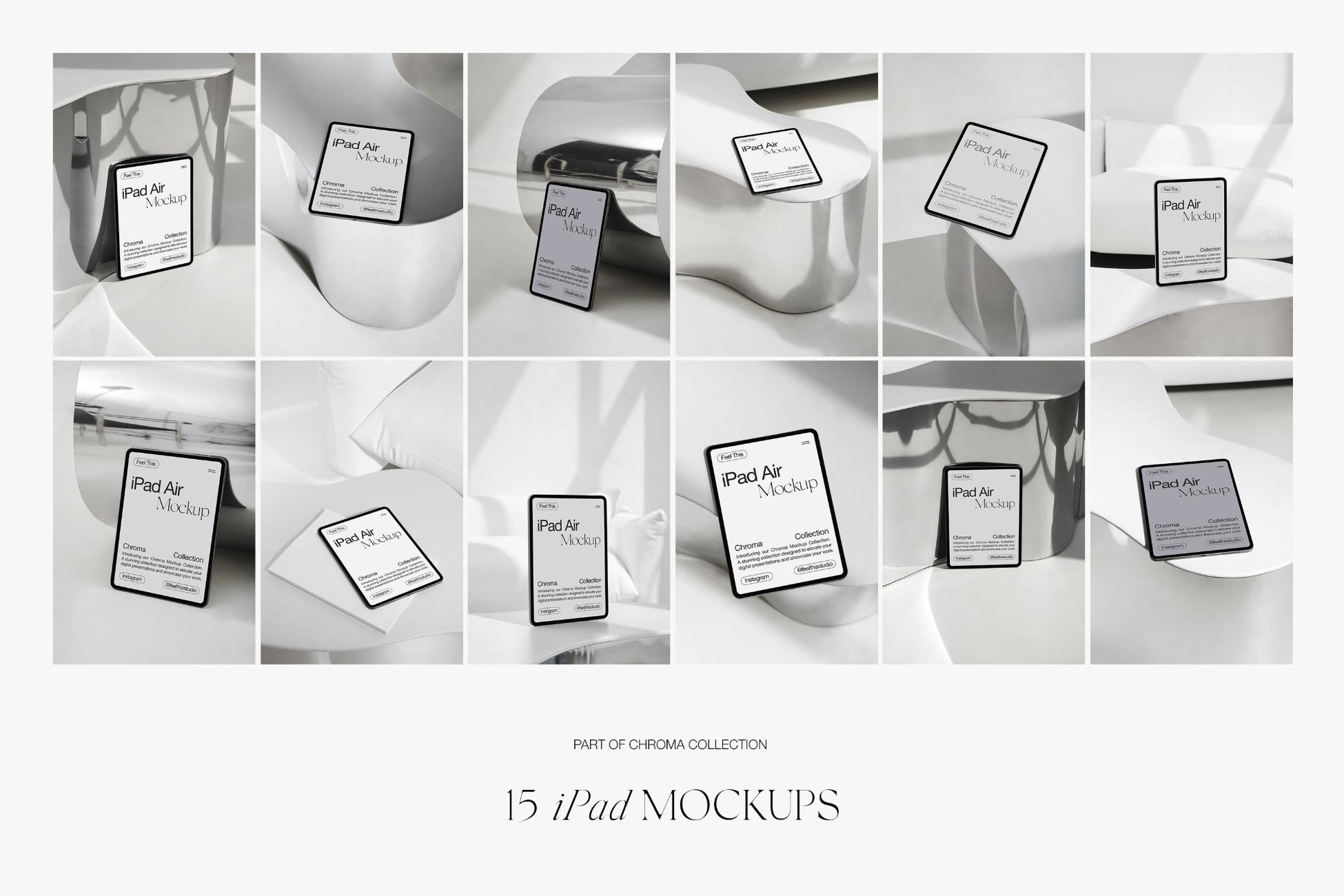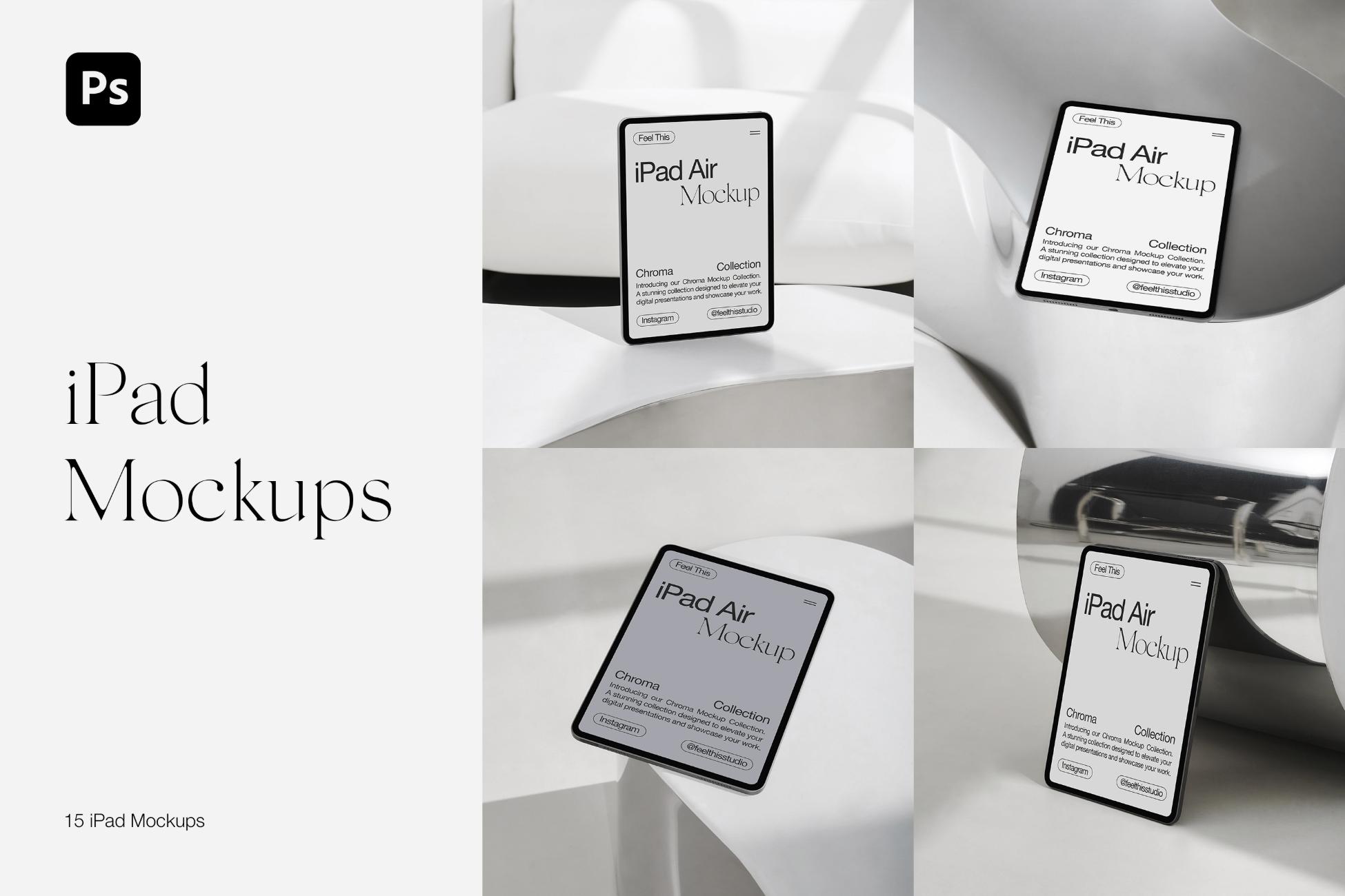 Introducing our premium collection of 15 iPad mockups, meticulously crafted to enhance your design projects with a clean and minimalist aesthetic. With 15 unique mockup variations, you'll find the perfect one to suit your project, whether it's an app, website, or digital artwork. All mockups are available in high resolution, allowing you to display your work with crystal-clear quality on various platforms.