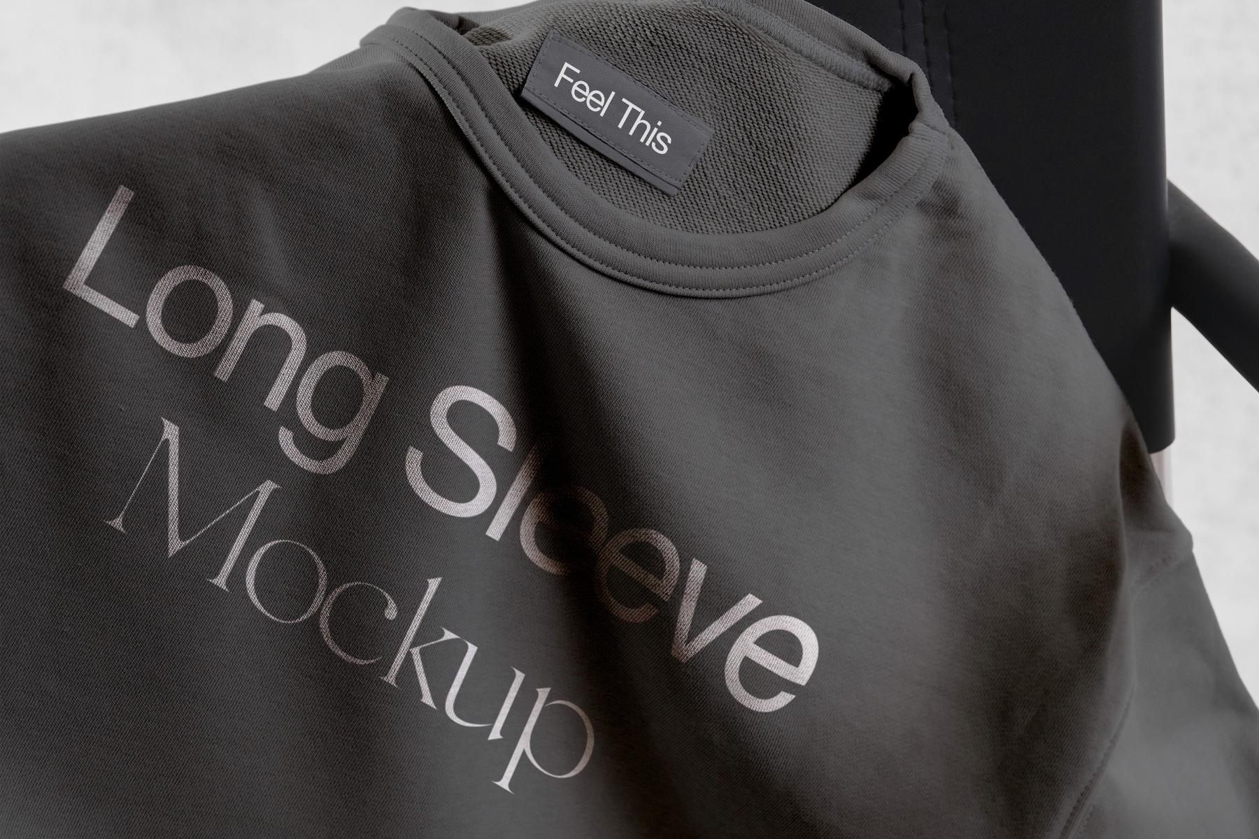 Realistic Long Sleeve T-Shirt Mockup for Photoshop. Easily showcase your designs on a photorealistic model.