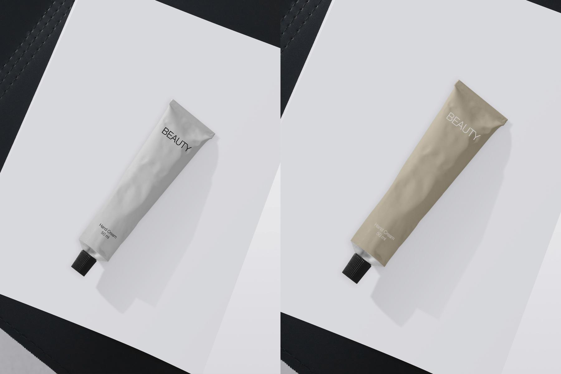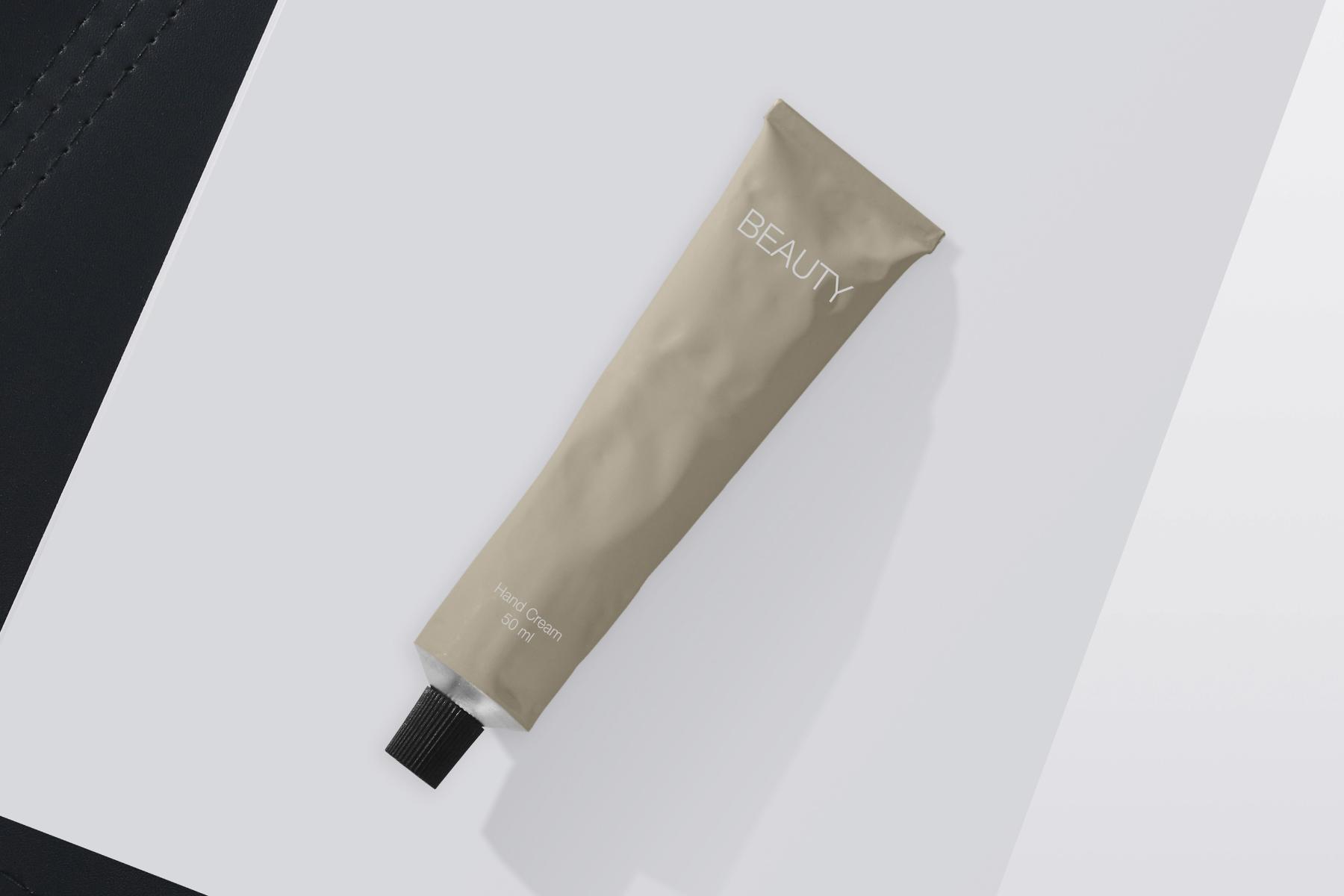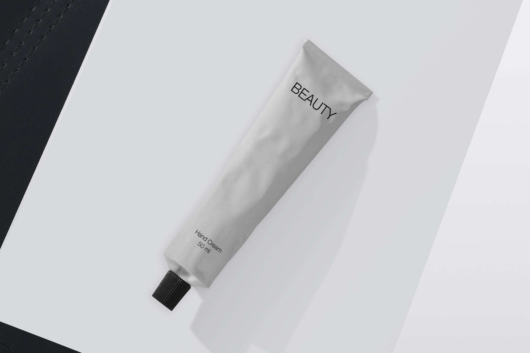 This beauty hand cream mockup is part of Cielo Mockup Bundle, which includes 25 mockups of long sleeve, magazine, MacBook, iPad, cosmetic, and poster.