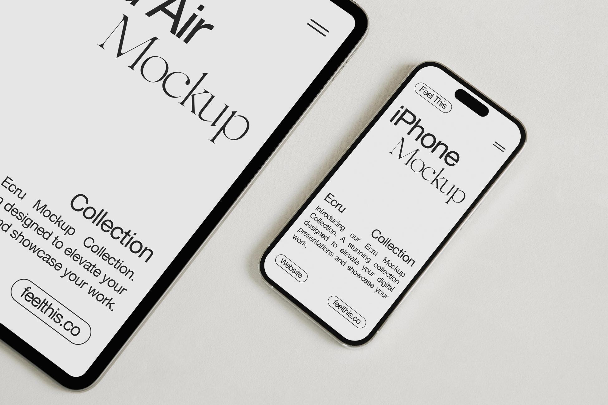 This iPad mockup is part of Ecru Mockup Bundle, which includes over 60 mockups of iPhones, iPads, MacBooks, & Frames in various styles.