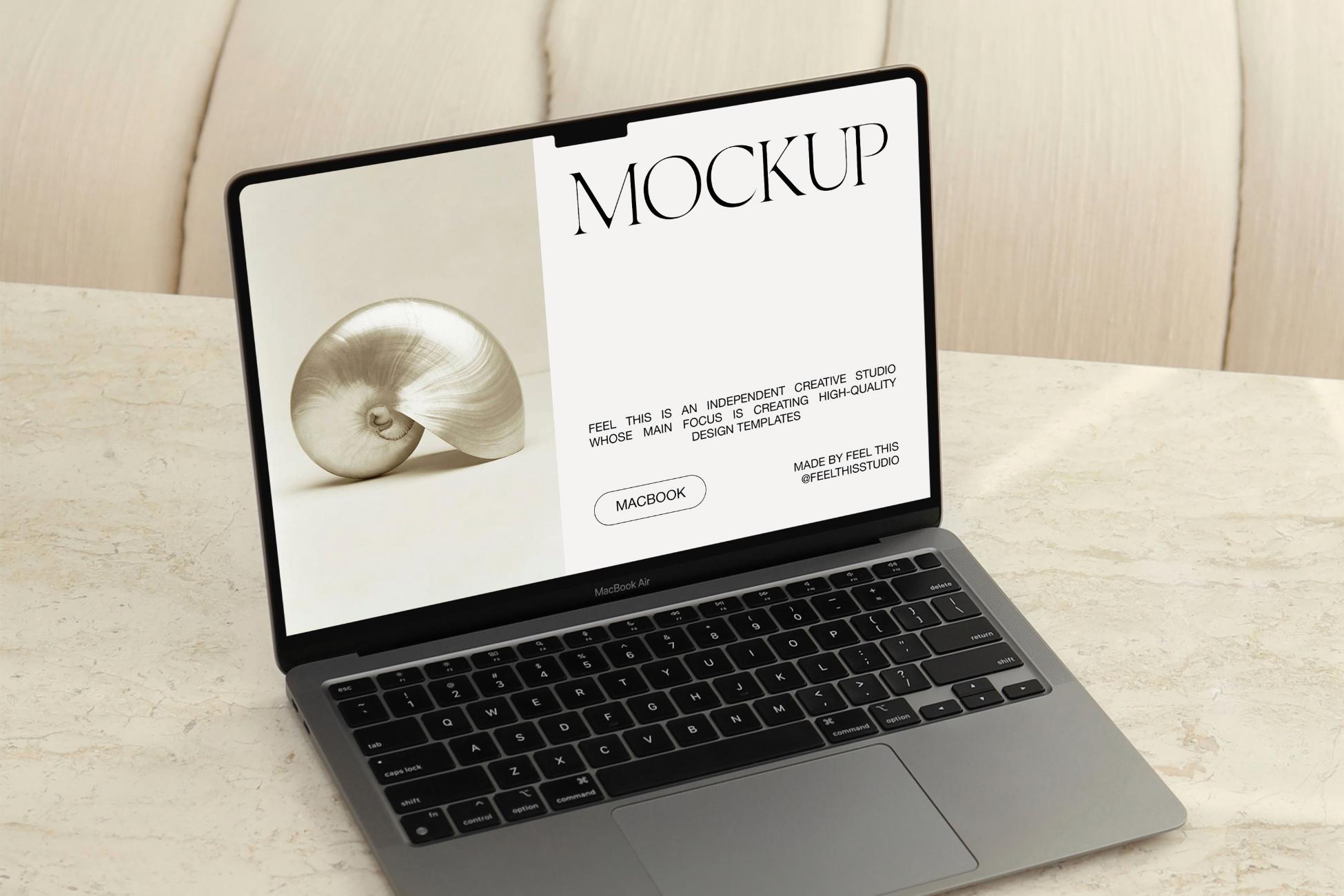 Introducing our premium MacBook Air mockup, meticulously crafted to enhance your design projects with a clean and minimalist aesthetic. Whether you're a graphic designer, marketing professional, or a brand enthusiast, this mockup will be your go-to tool for showcasing your designs.
