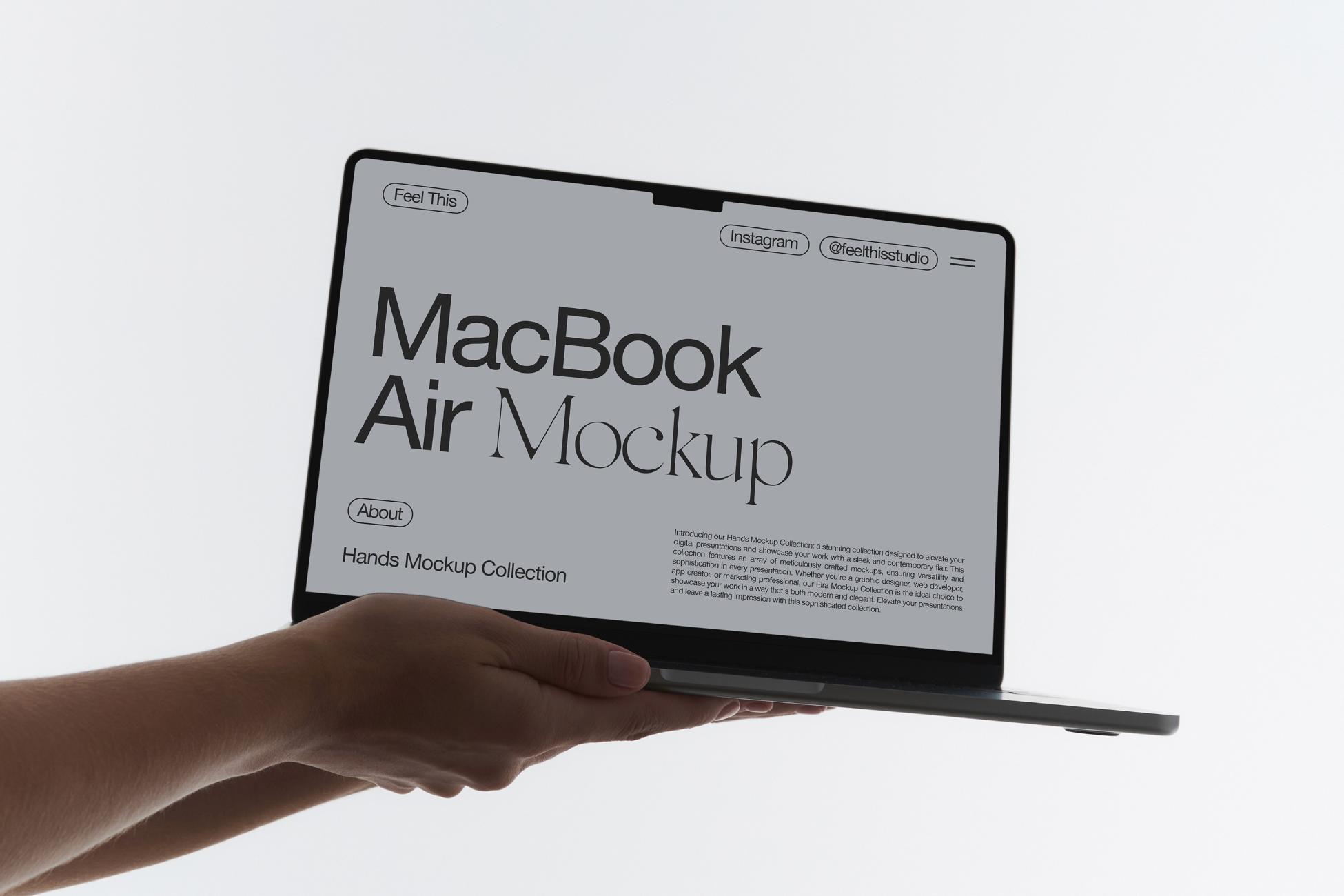 This MacBook mockup is part of Hands Mockup Bundle, which includes over 50 mockups of iPhones, iPads, MacBook, Stationery, Tote Bags, & Perfumes in various styles.