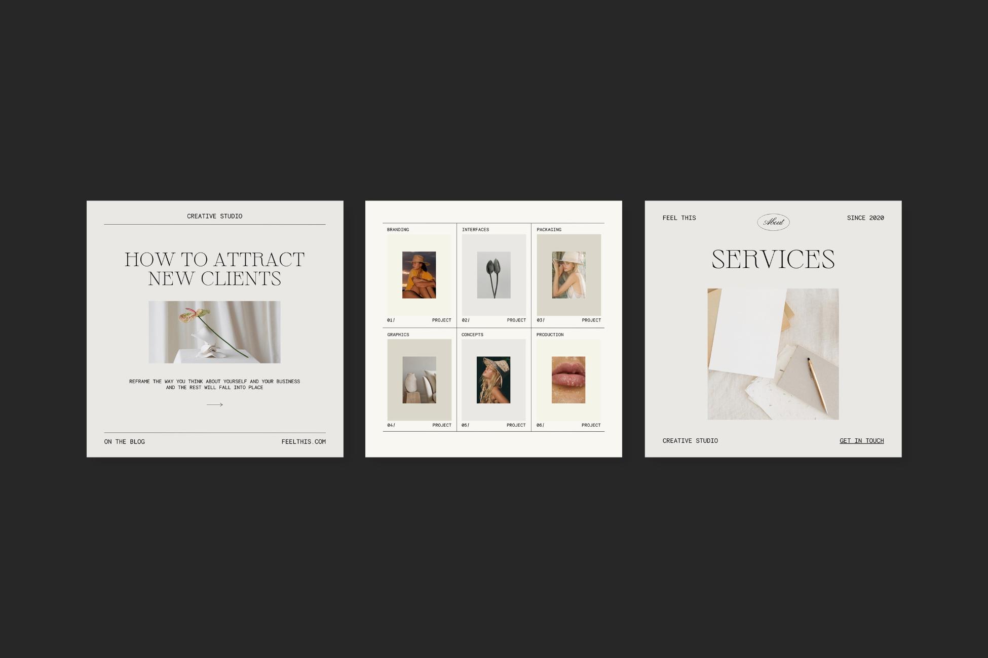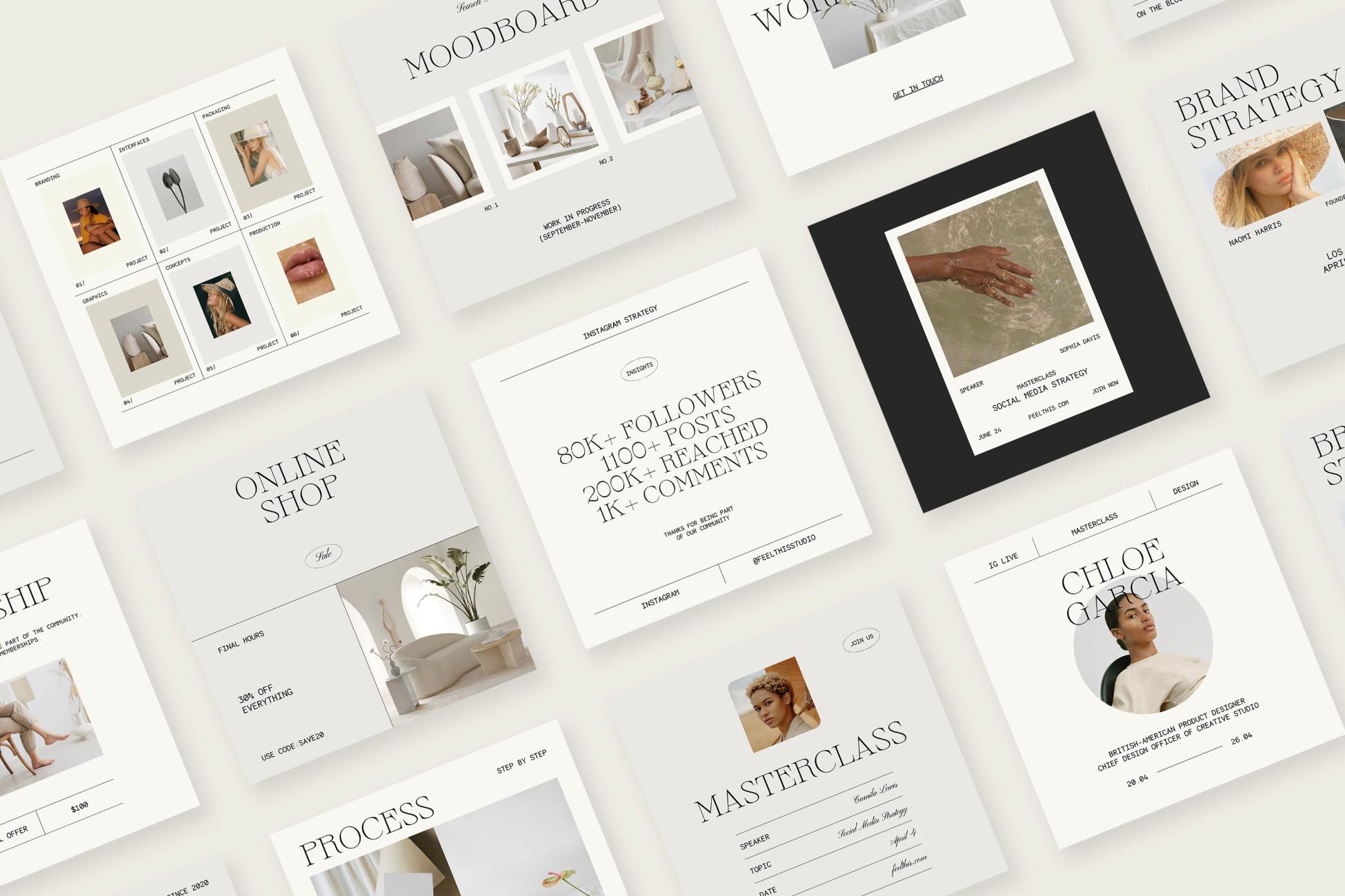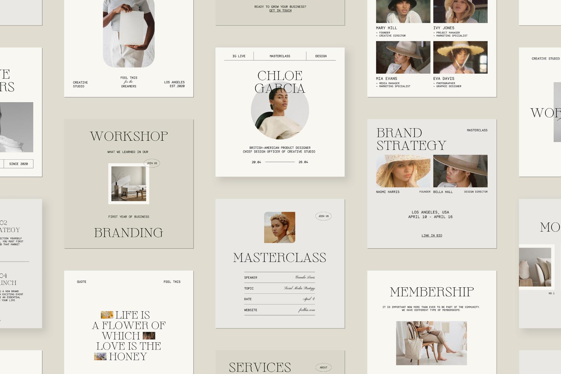 Heaven Social Media Pack includes 160 Canva & Adobe Photoshop templates for Instagram & Pinterest. You can use these templates for any other social networks such as Facebook and Twitter. It will help you to give a beautiful and elegant look to your profile, engage your followers, monetize your page, and lead the traffic to your shop, blog, course, and online class.