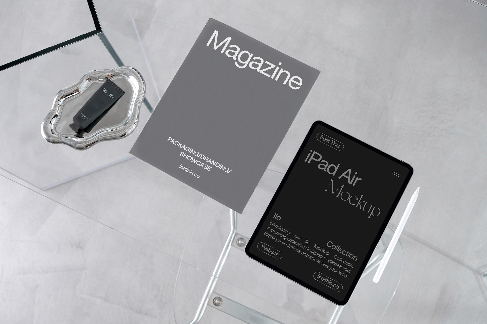 This mockup is part of the Ilo Mockup Bundle, a comprehensive collection featuring 29 unique mockups of everyday Devices, Stationery, and Cosmetics