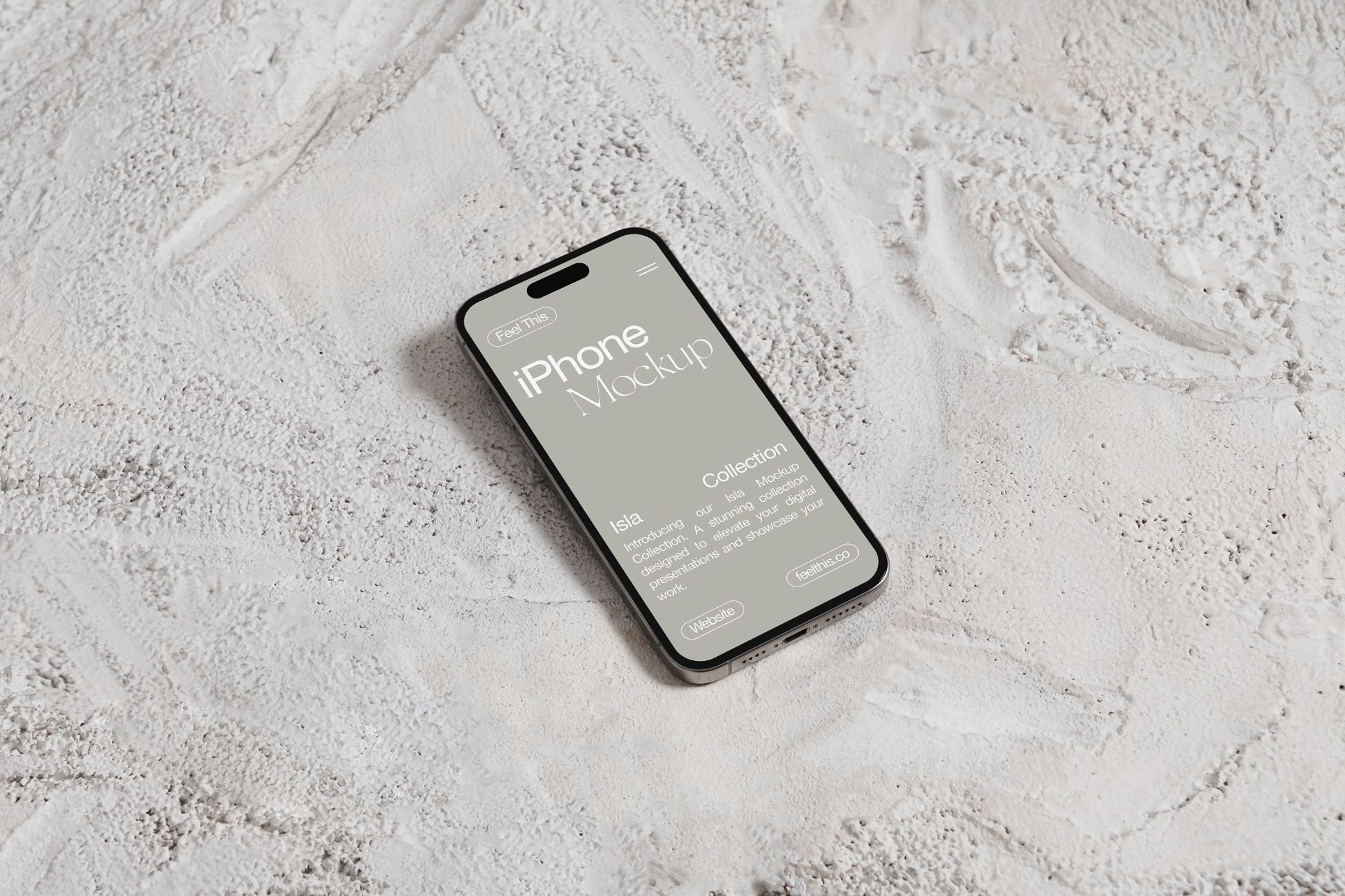 iPhone 16 Pro Mockup on Neutral Beige Stone for Adobe Photoshop
