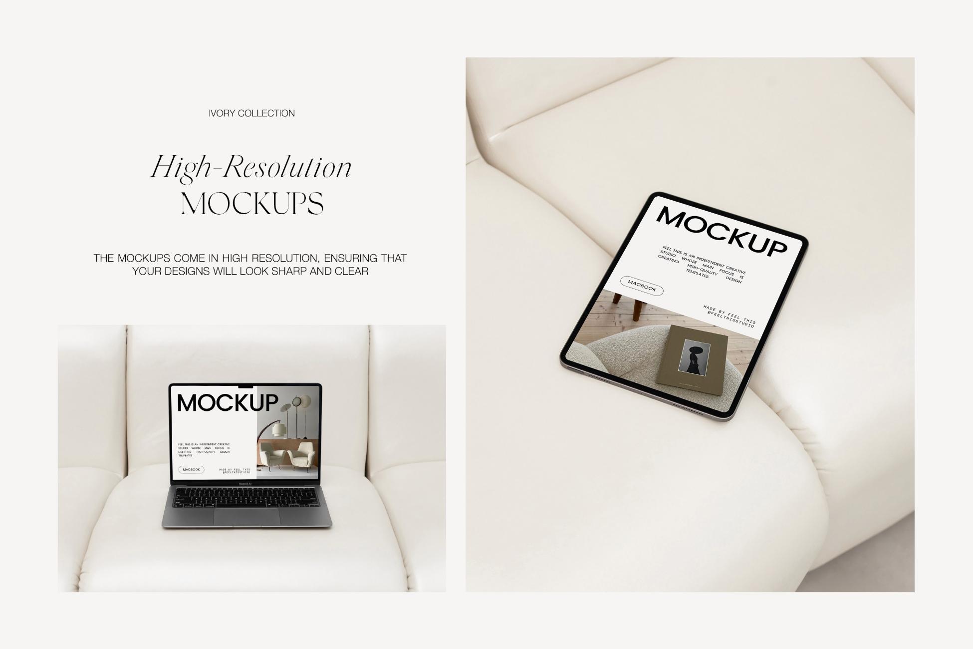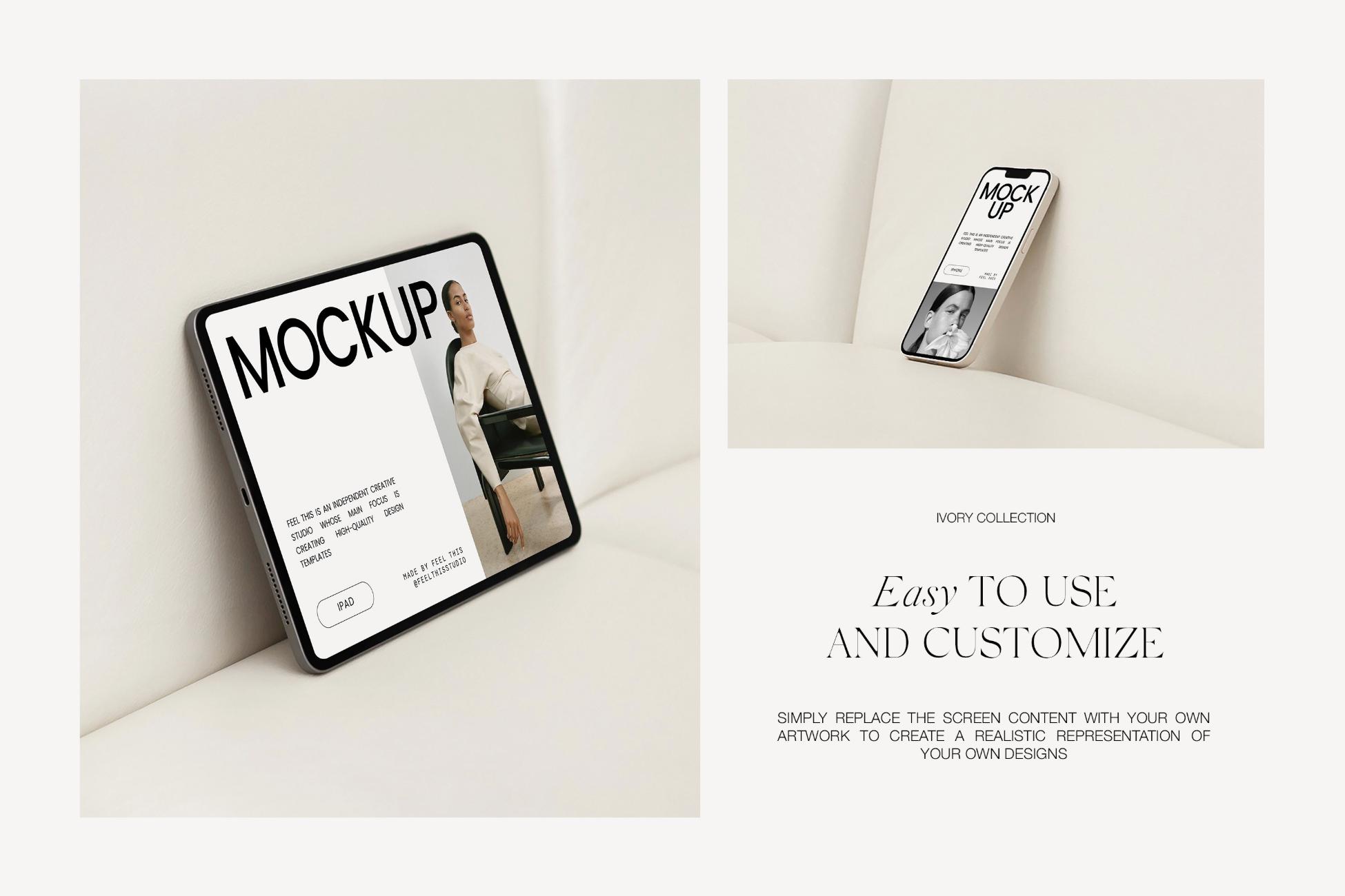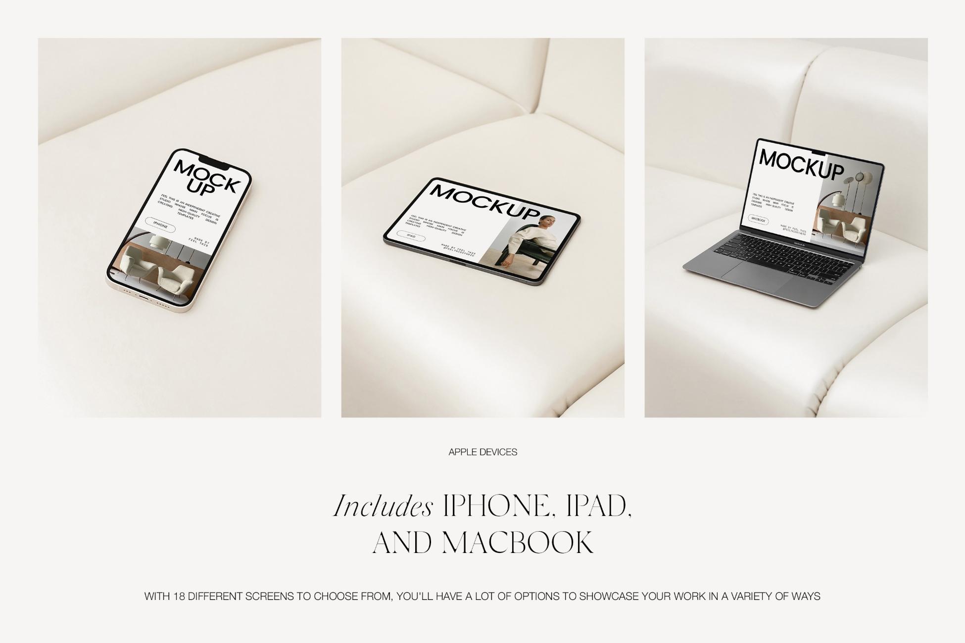 Ivory is a collection of 18 customizable MacBook, iPhone, and iPad mockups for Adobe Photoshop. Also, Ivory includes 7 beautiful and aesthetic photos.