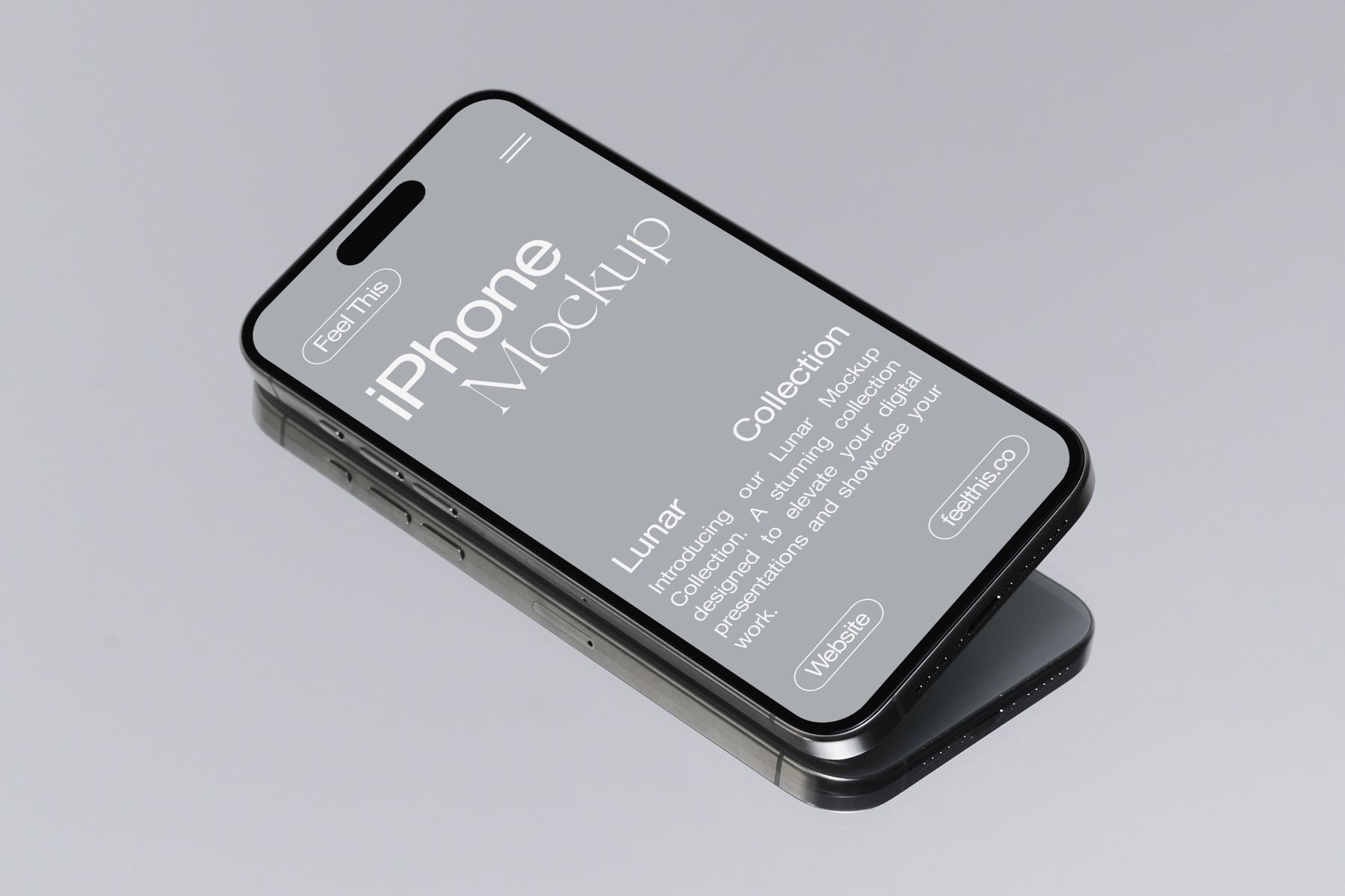 Showcase your mobile app, website, or branding designs with this elegant iPhone 16 Pro mockup, featuring a sleek iPhone set against a neutral grey aesthetic with a polished mirror reflection. This high-quality mockup is perfect for creating refined, professional presentations that highlight your digital designs with a modern touch.