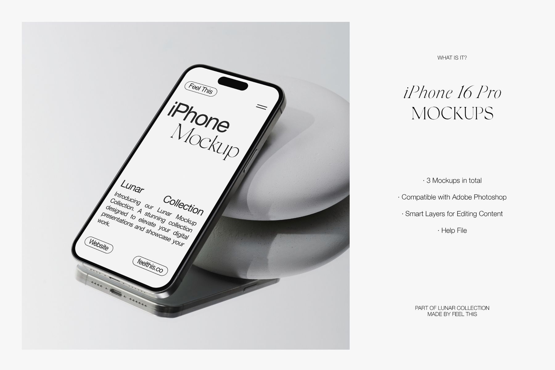 3 versatile iPhone 16 Pro mockups – Perfect for presenting app interfaces, web designs, and branding visuals.