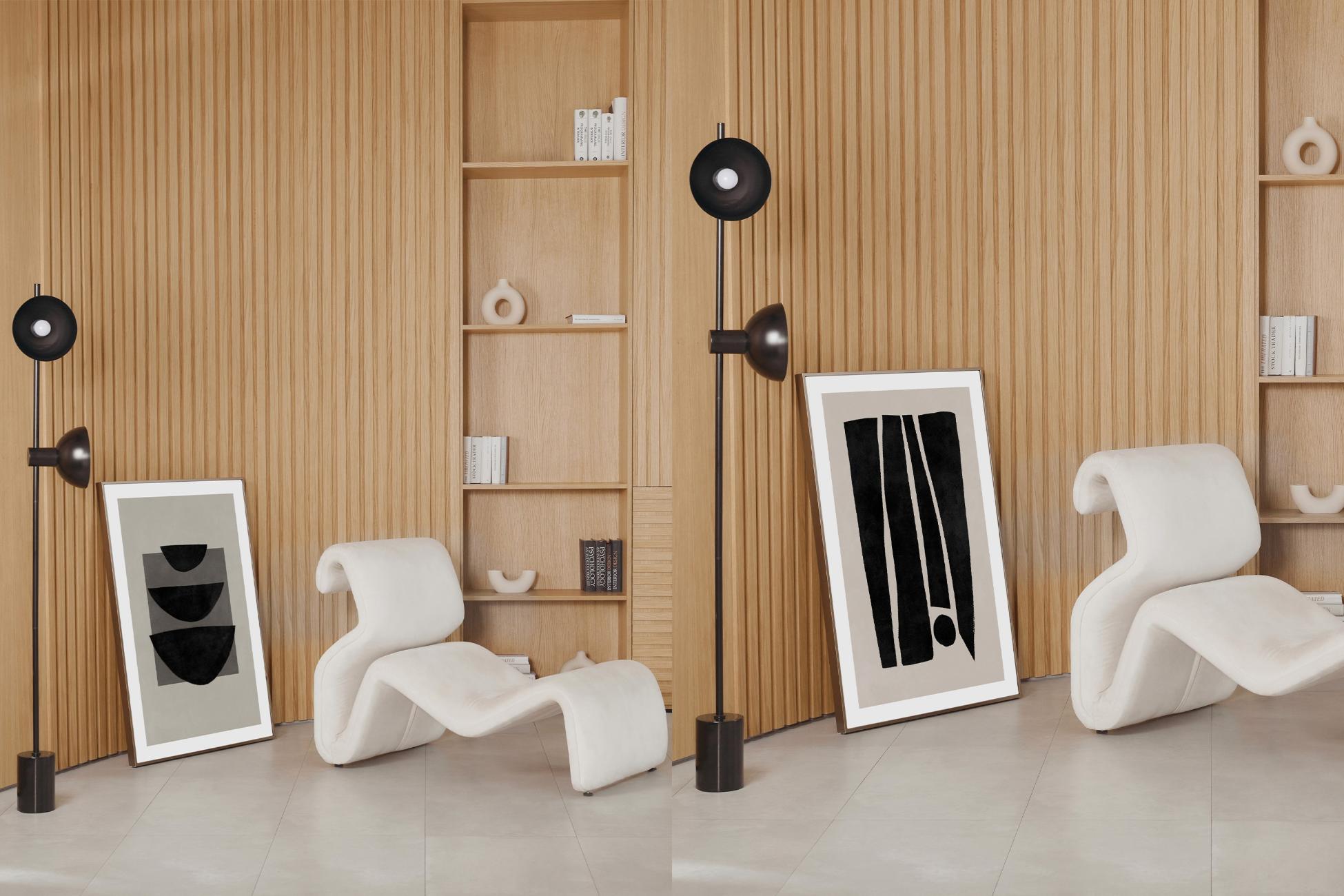 Effortlessly customize this mockup using Photoshop's smart object functionality. Simply drag and drop your artwork into the designated layer, and watch your designs come to life within the beautifully detailed beige frames.